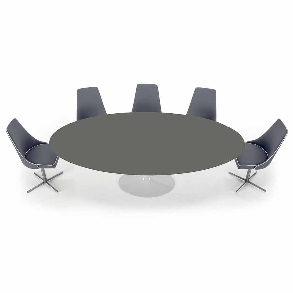 Oval dining table made in Italy with fenix top and aluminium base.