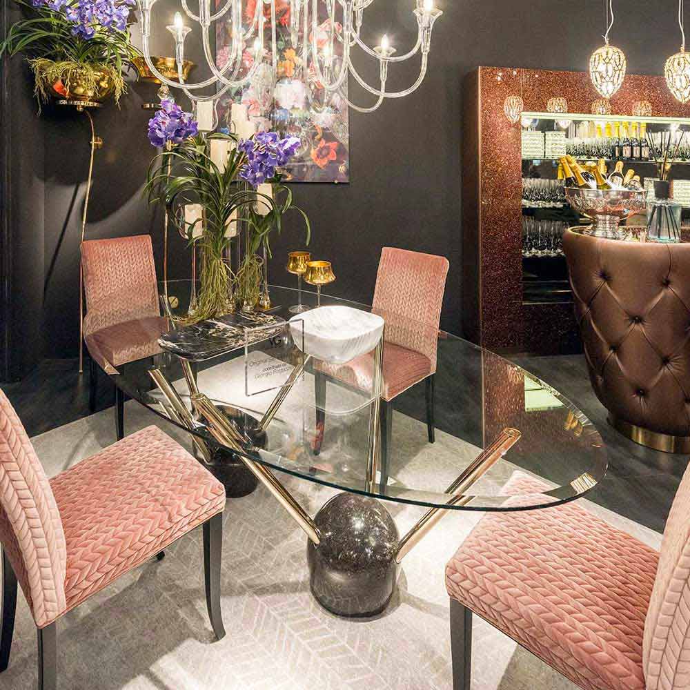Oval dining table Zoe with glass top, made in Italy, modern design.