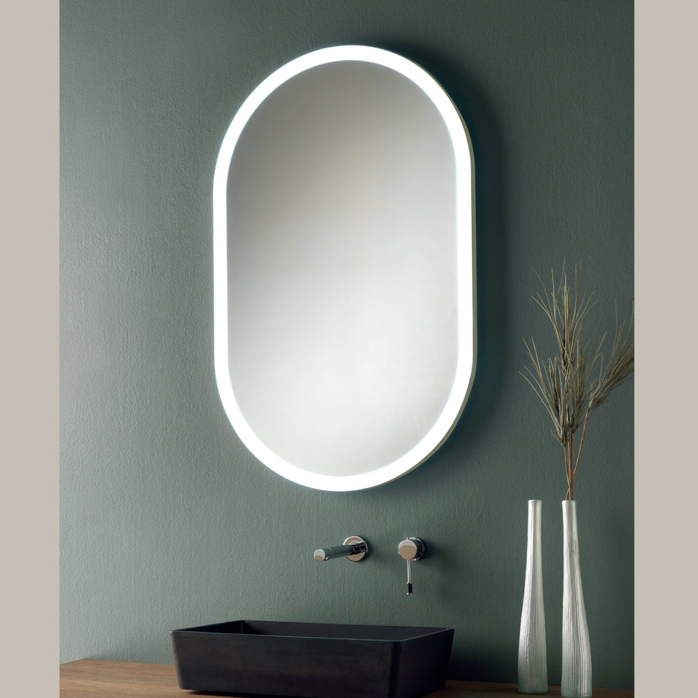 Discover the essence of integrated lighting and modern design with this oval metal mirror with LED lights . Designed to blend elegance and technological innovation , this mirror is a refined addition to any environment, offering not only functionality but also eye-catching style.