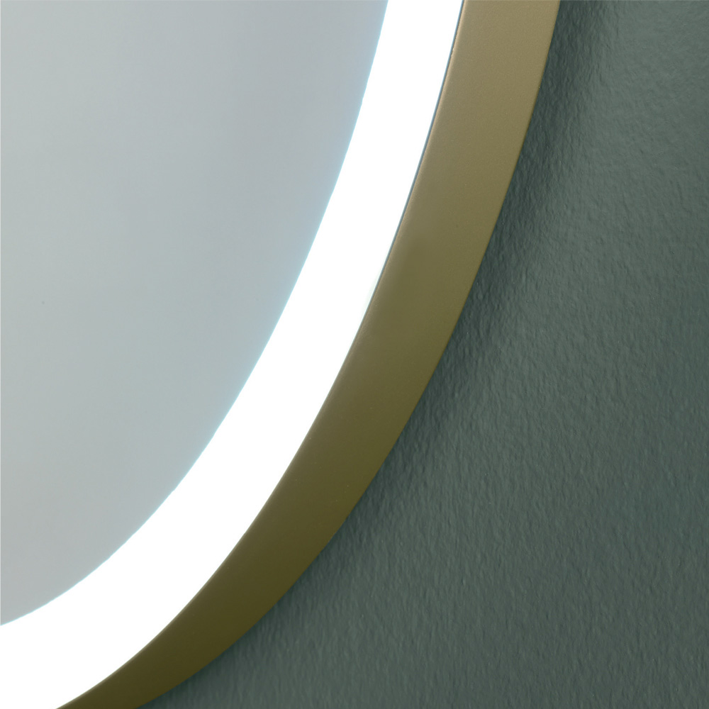 The oval profile is defined by a metal frame that delicately embraces the mirror, while the perimeter is illuminated by a ring of LED light that projects a uniform and welcoming brightness. This detail not only improves visibility but also adds an atmosphere of warmth and depth to spaces, making this mirror perfect for the bedroom, bathroom, or as a welcoming piece in the entryway of your home.