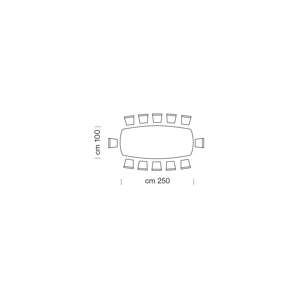 • L 250 x D 100 x H 73.5 cm (12 seats);