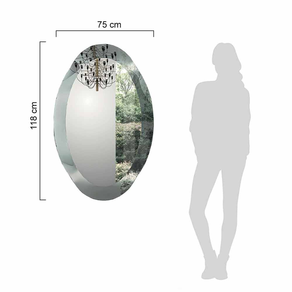 Oval wall mirror made in Italy with internal mirror and 6 mm curved glass frame in mirrored crystal finish.