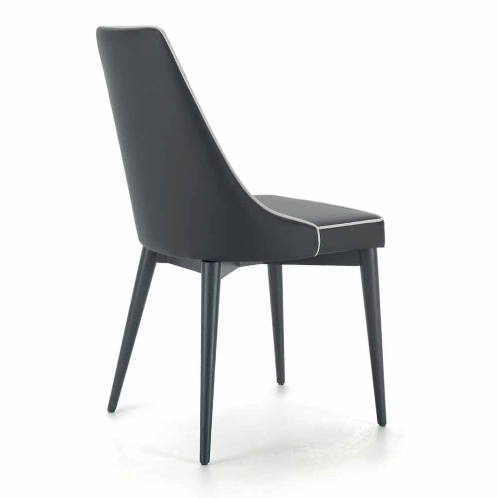 Luxury padded chair with graphite steel base and eco-leather seat with white piping; handcrafted in Italy.