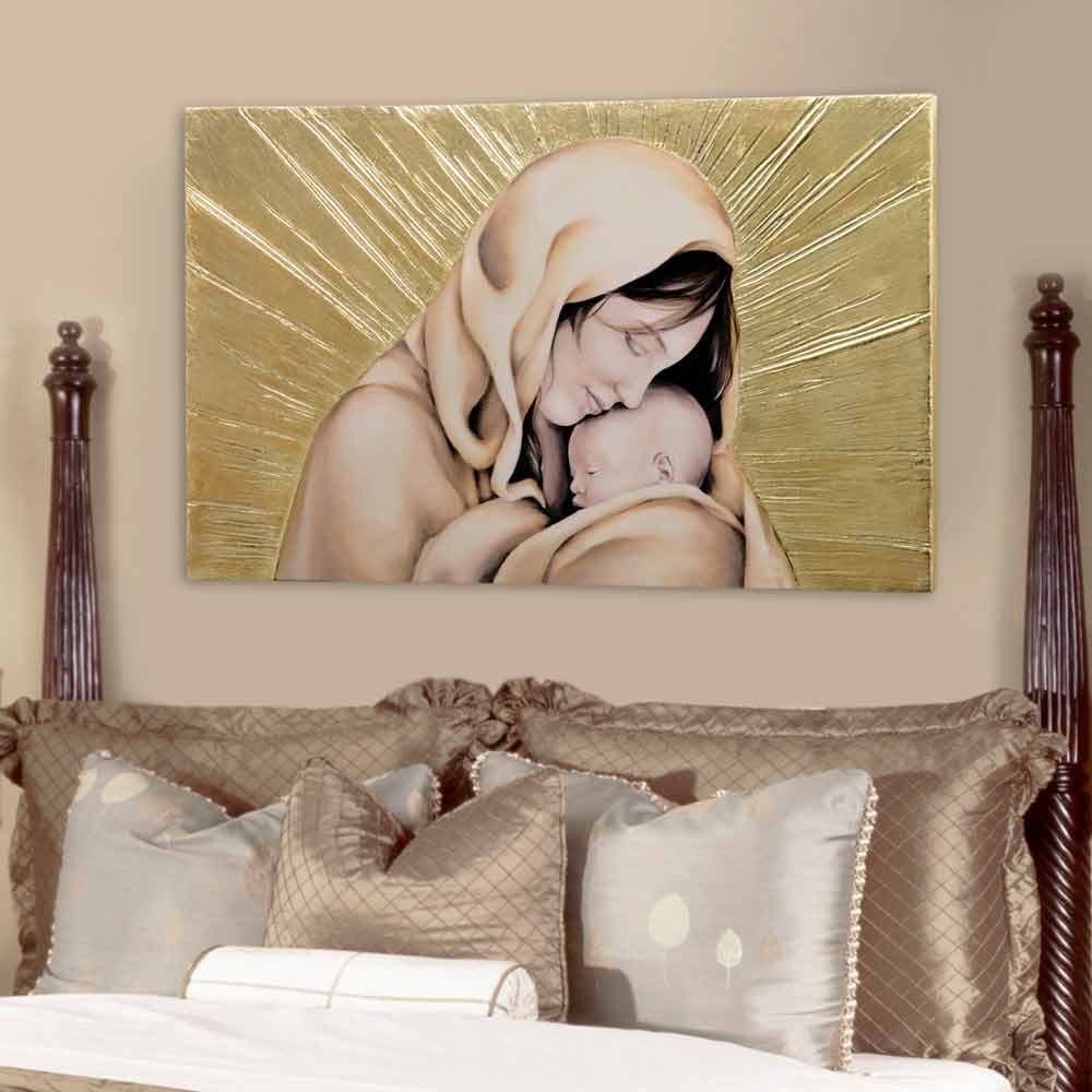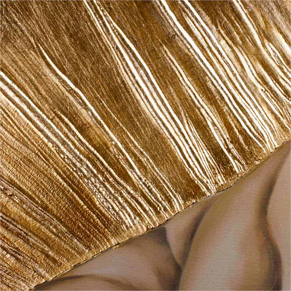 Amore Infinito is hand-decorated with embossed gold leaf on canvas.