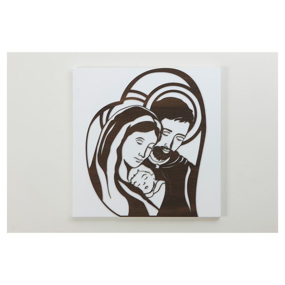 Religious representation of St. Joseph with his family made with simple and linear finishes that bring out all the love between people. The Italian master craftsmen took care of the smallest details and details of the creation of the design, giving life to a unique and evocative painting.