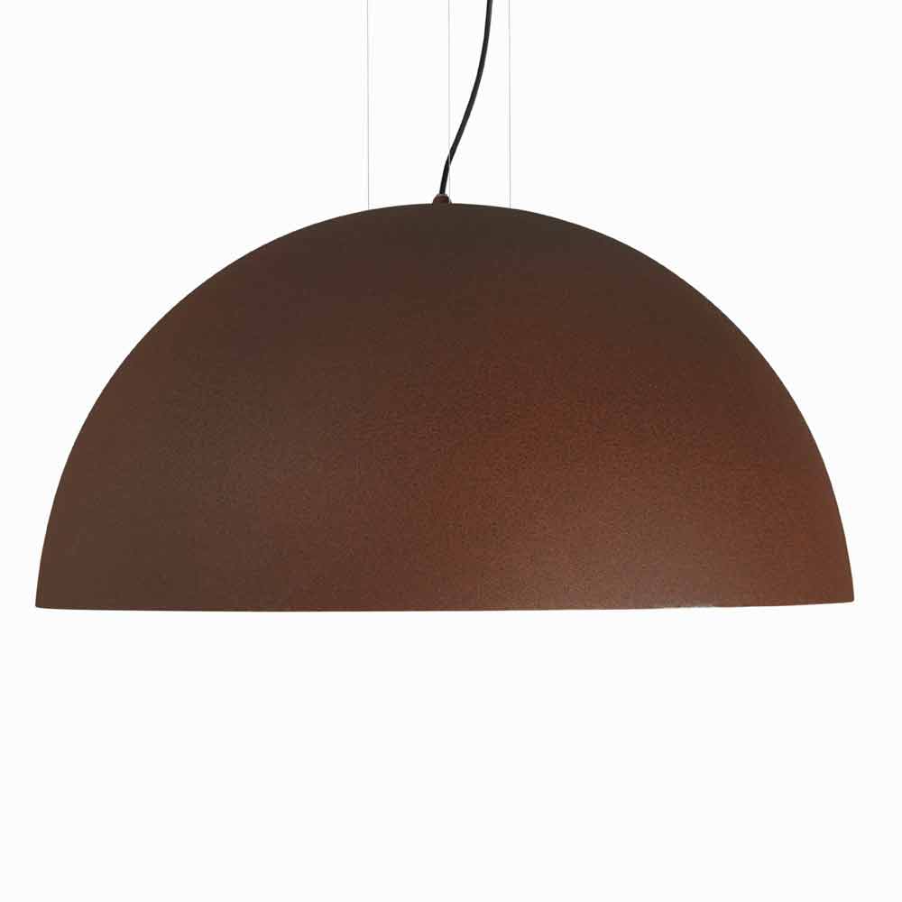 Two-colored pendant lamp in powder-coated steel and decorated by hand. The light spreads homogeneously thanks to its shape and to the white painted interior covering.
