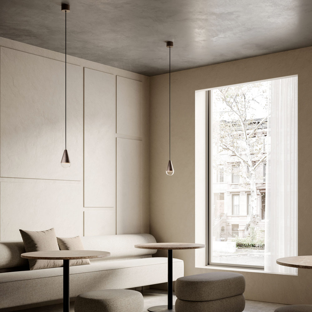 Made in Italy. The clean queues of the collection of indoor lamps highlight the purity of the iron material. The pendant element can be used alone or in combination with others, to create linear compositions or groupings with a scenographic effect.
