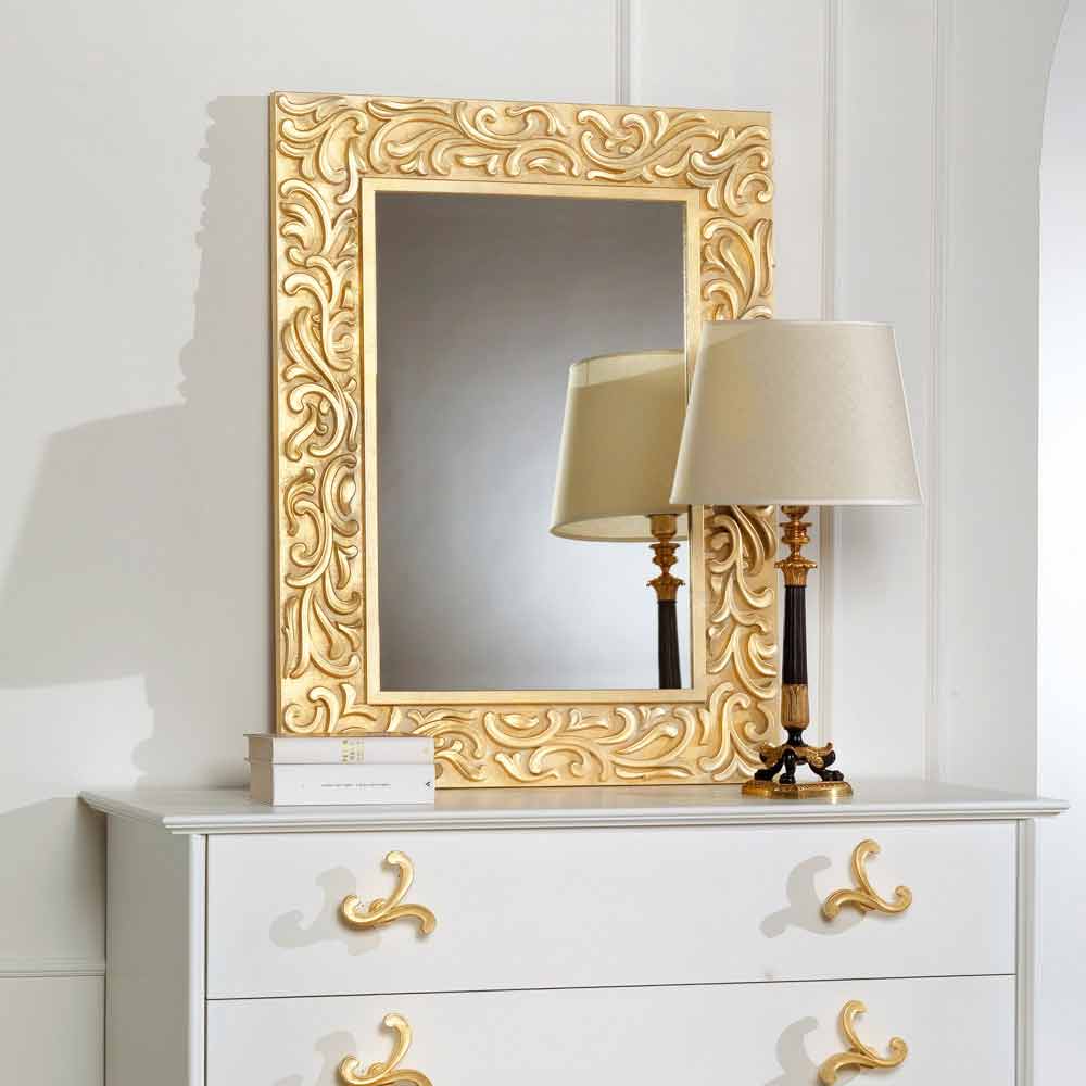 The Pepa mirror is characterized by a craftsmanship carried out using quality materials and using the experience of skilled Italian artisans. The frame is made of wood with resin applications. Pickled gold leaf finish. Crystal mirror, 4mm thick. Made in Italy.