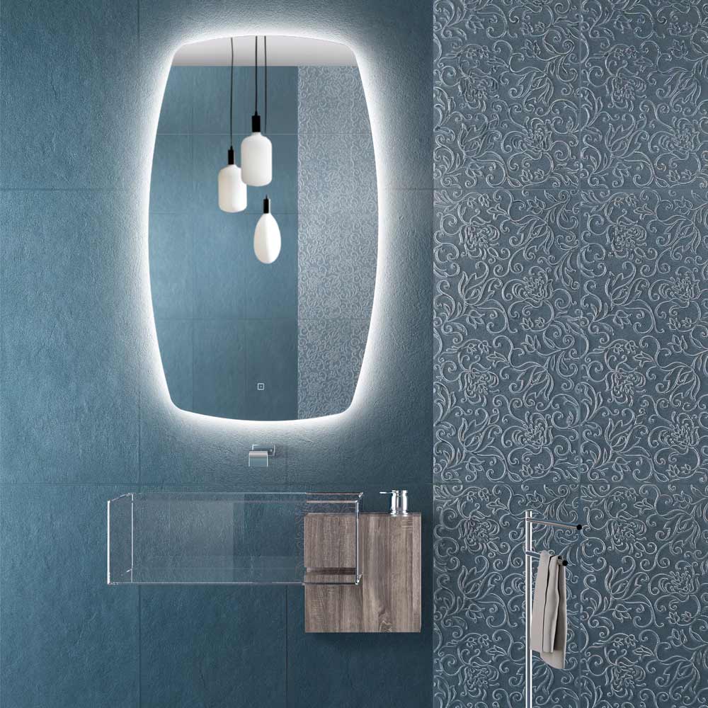 This mirror with an elegant and elongated design is a real highlight for any environment, embellishing the wall with its sinuous and modern shape. Perimeter backlighting adds a subtle but effective touch of brightness, which amplifies the feeling of spaciousness and adds depth to the room.