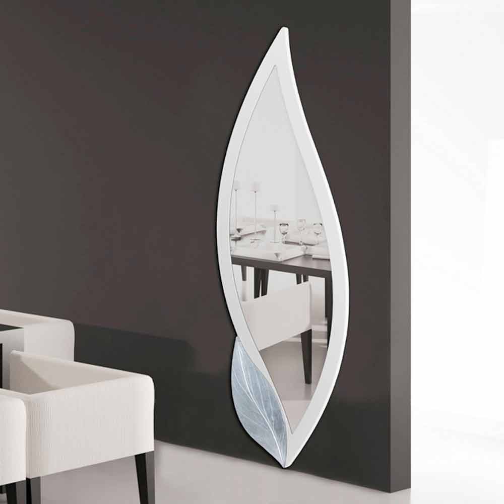 Modern design wall mirror. This unique handmade mirror is made of ivory lacquered MDF decorated with silver leaf. A true art piece! This original wall mirror is the perfect mirror to furnish your house, your office or your shop with style. The small leaf in the silver colour is hand decorated.