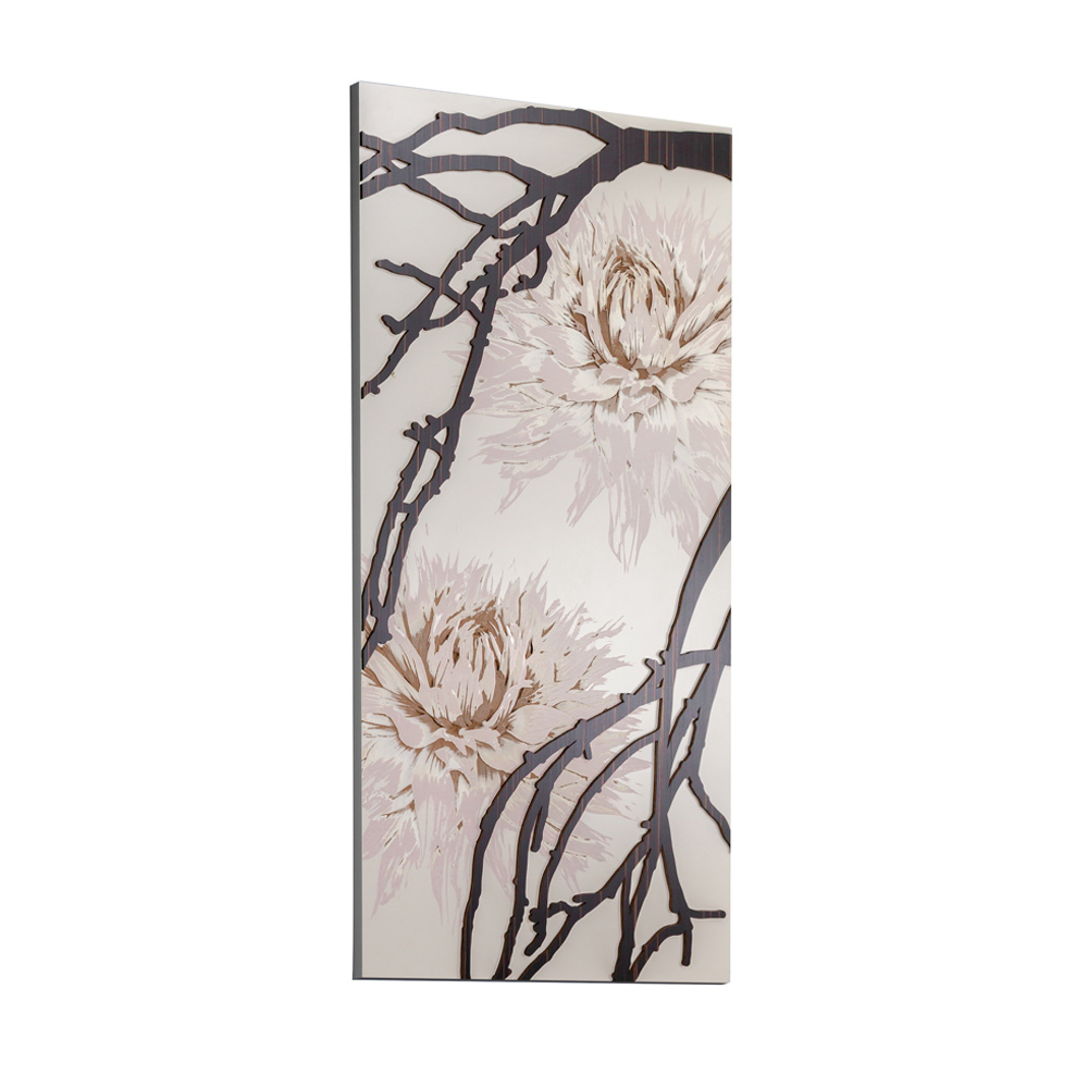 Decoration panel with dahlias in sand lacquered wood Made in Italy