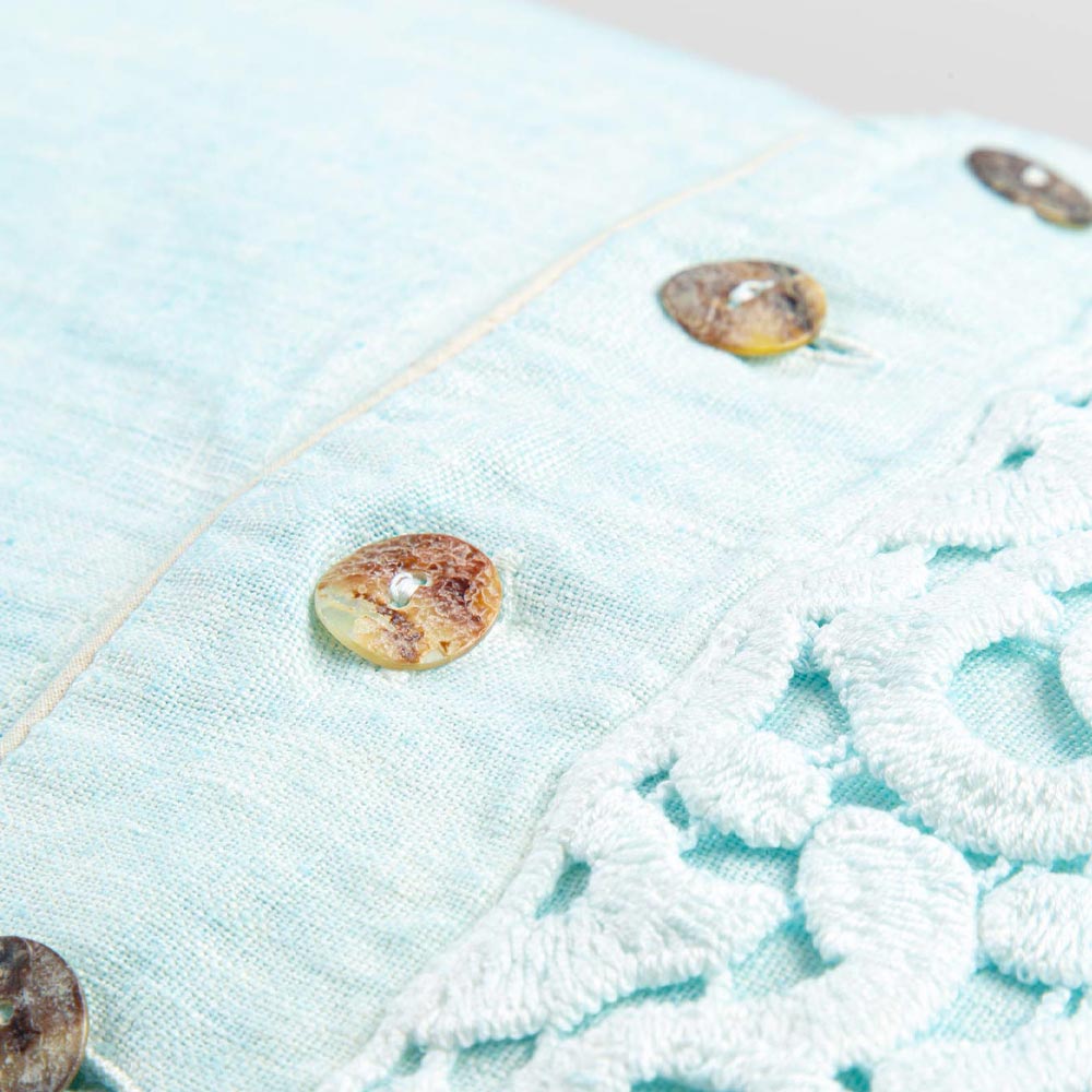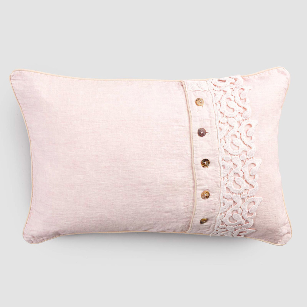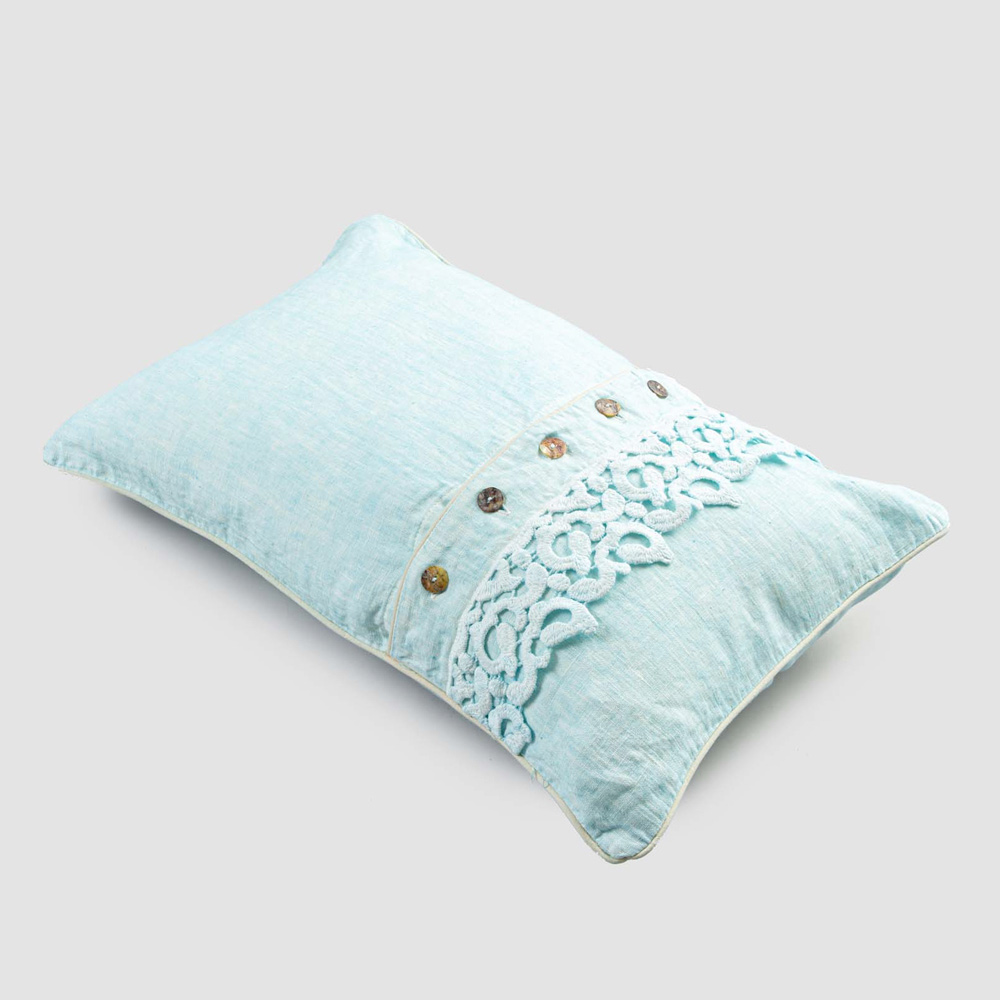 Pillowcase in colored linen with poem lace, buttons and luxury piping made in Italy.