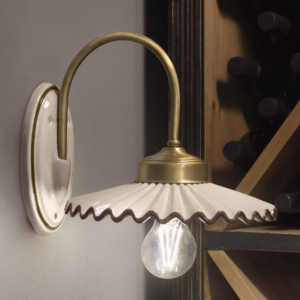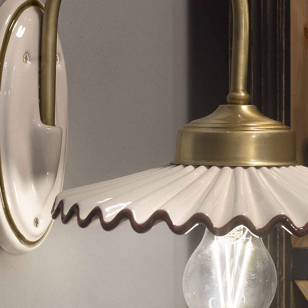 Wall lamp in pleated glossy ceramic and hand-painted border, made in Italy by Ferroluce.