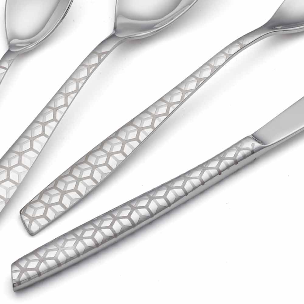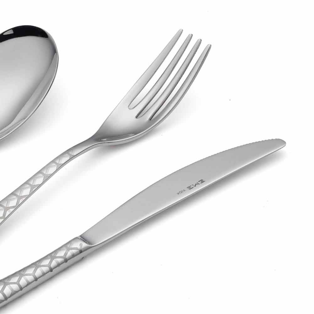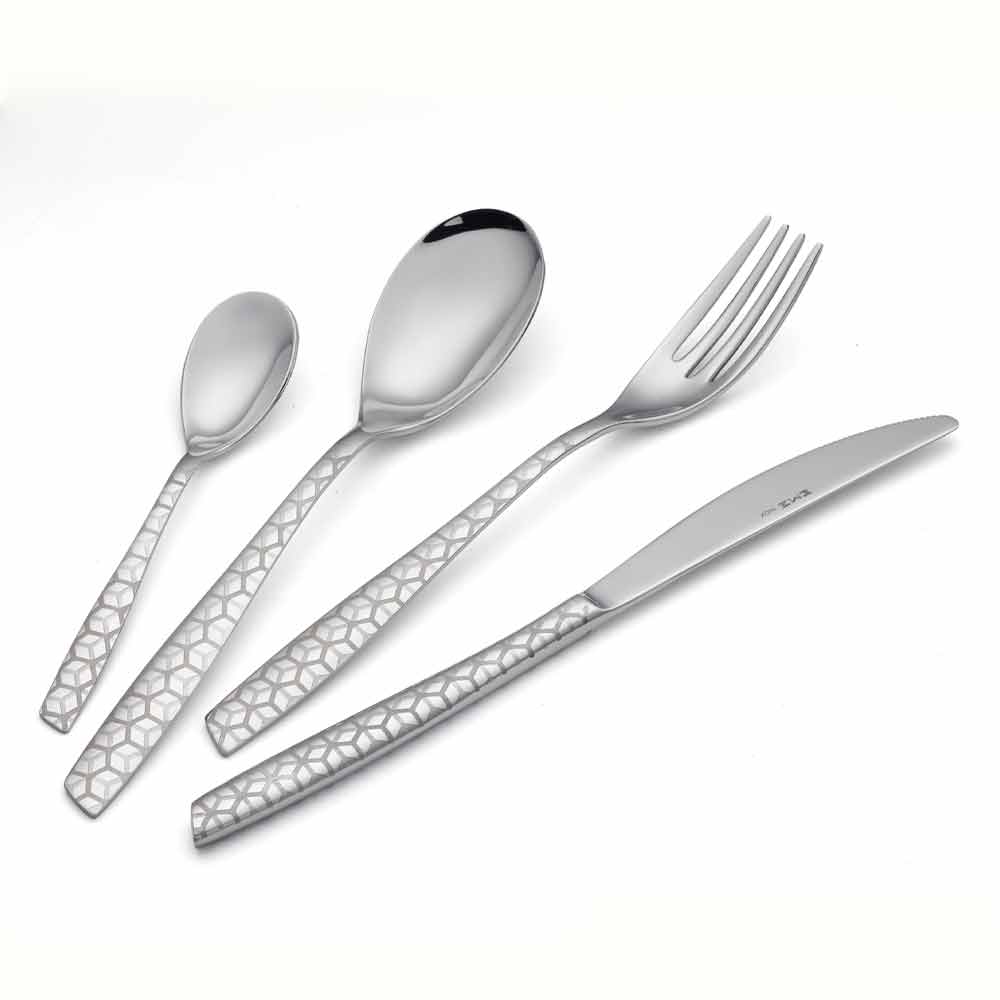 24 stainless steel cutlery set with a modern design with laser decoration and glossy finish, made in Italy.