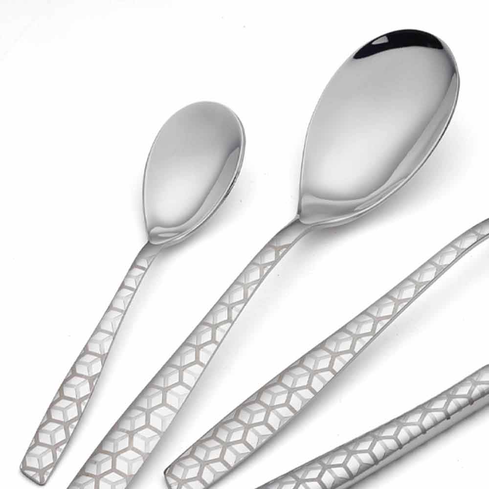 contemporary and trendy design, in particular for the soft roundness of the spoons and for the oblique cut on the final part of the handles, which makes the grip pleasant and with harmonious features.