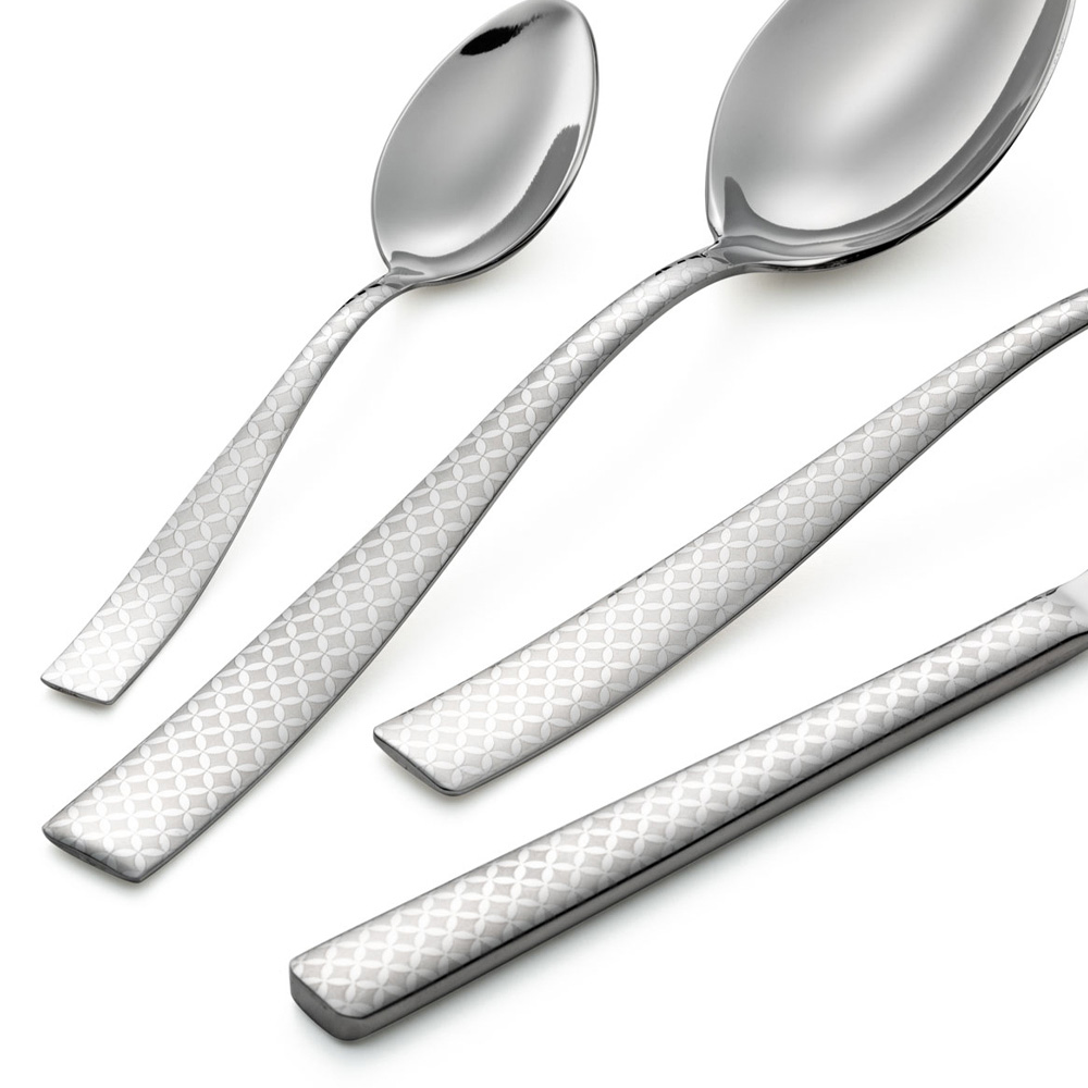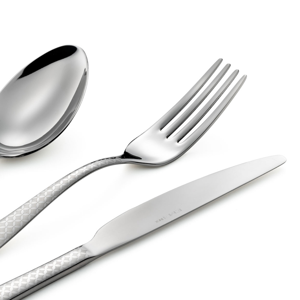 Polished Stainless Steel Cutlery with Geometric Laser Decoration 24 Pcs - Rupeo