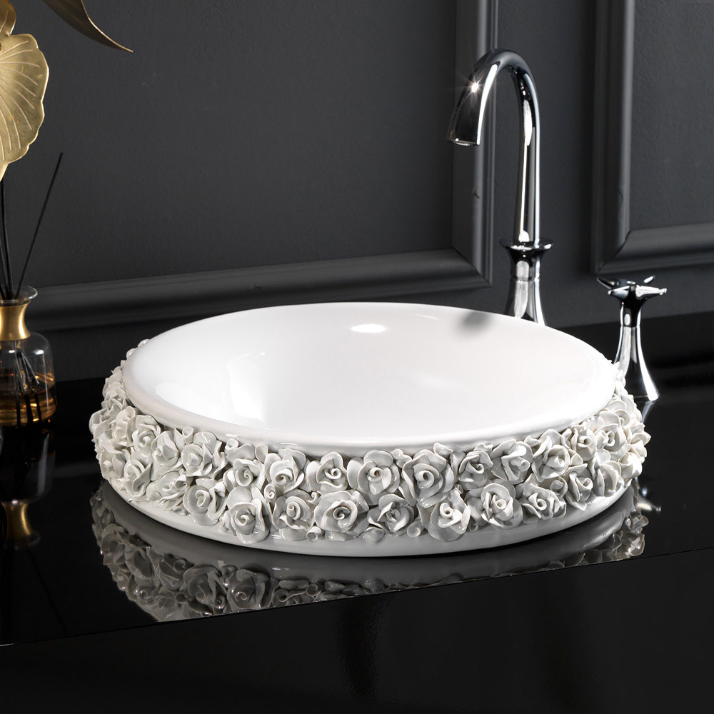 delicacy of the petals gives the entire sink a refined and precious touch which makes it one of a kind and perfect for giving the bathroom a warm and refined atmosphere.