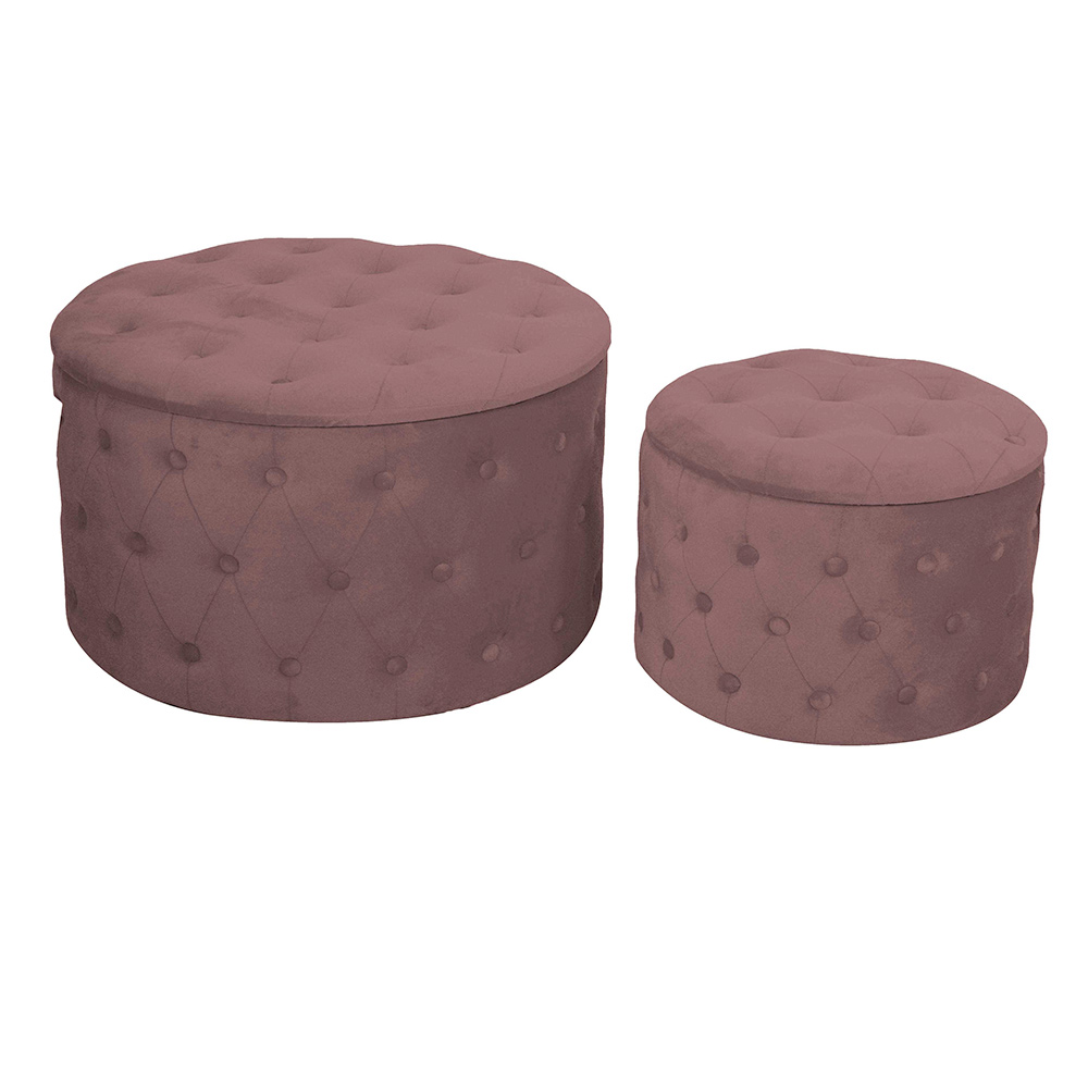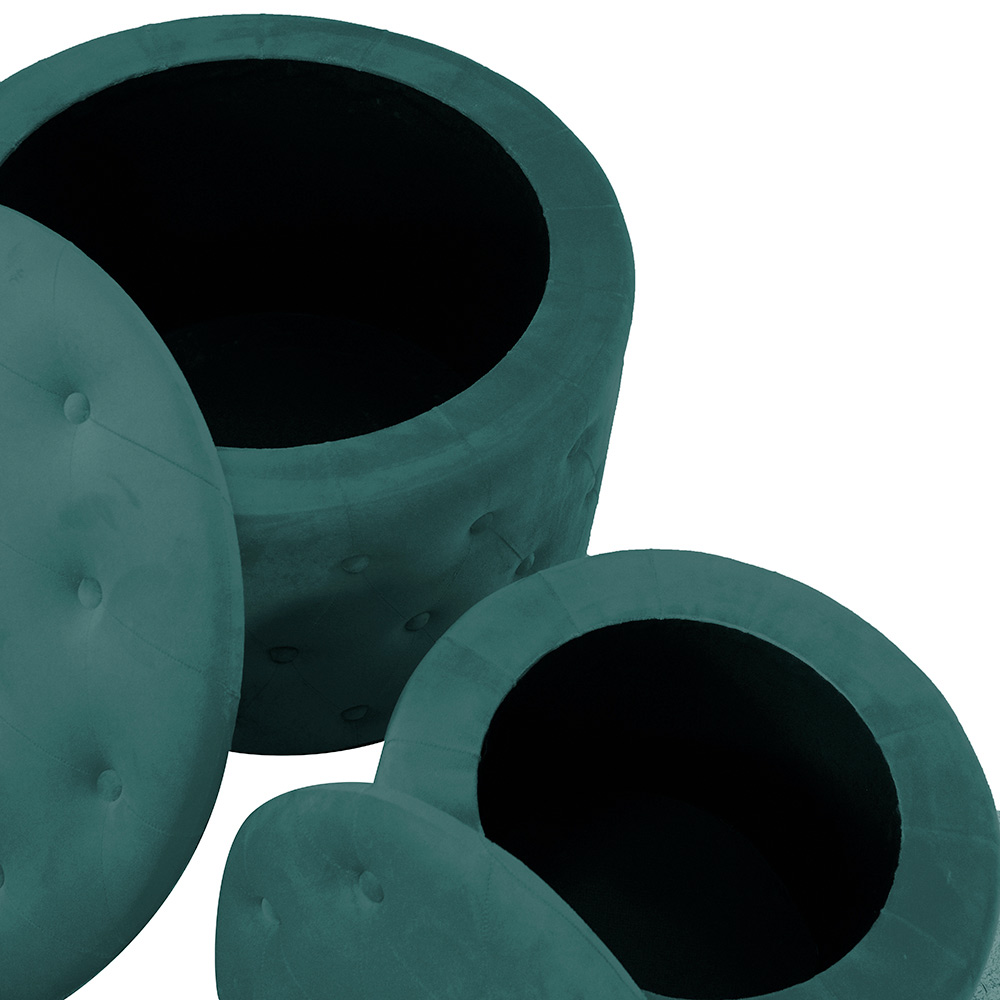 This set of storage ottomans is the perfect complement to combine elegance and functionality in any room of the house. Covered in a sophisticated velvet , these ottomans stand out for their buttoned capitoné design, which adds a touch of class and sophistication to your lounge, bedroom or entryway.