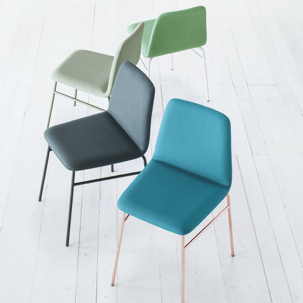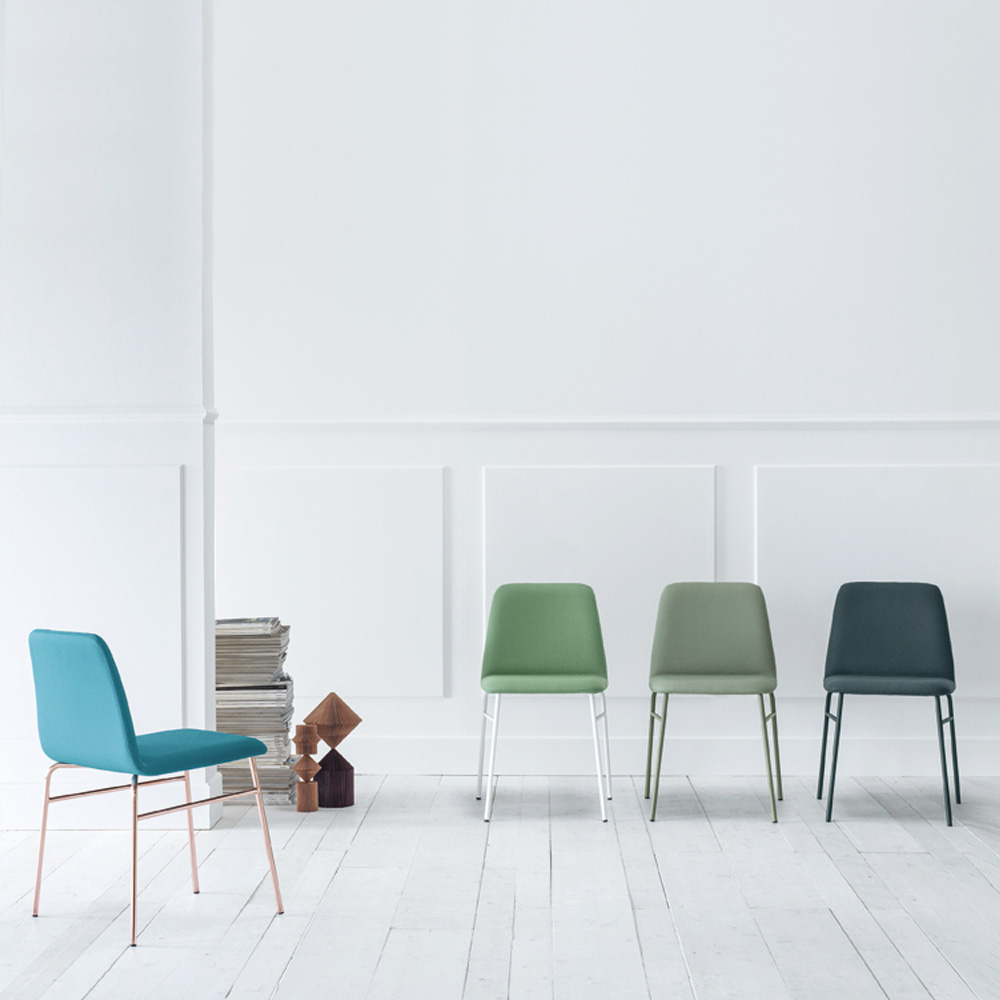 Made in Italy modern chair ideal for dining room or kitchen with painted metal structure and upholstered seat covered in fabric . Simple lines run through the entire figure of this complement with a contemporary soul, perfect for those looking for a minimal product without wanting to give up an original and modern design. Thanks to its essentiality, its personality changes according to the chosen colour combinations, proposing discreet and elegant solutions thanks to neutral shades but also colorful and original ideas with more extravagant shades ideal for giving your furniture a creative and original touch, succeeding to adapt to any furnishing situation.
