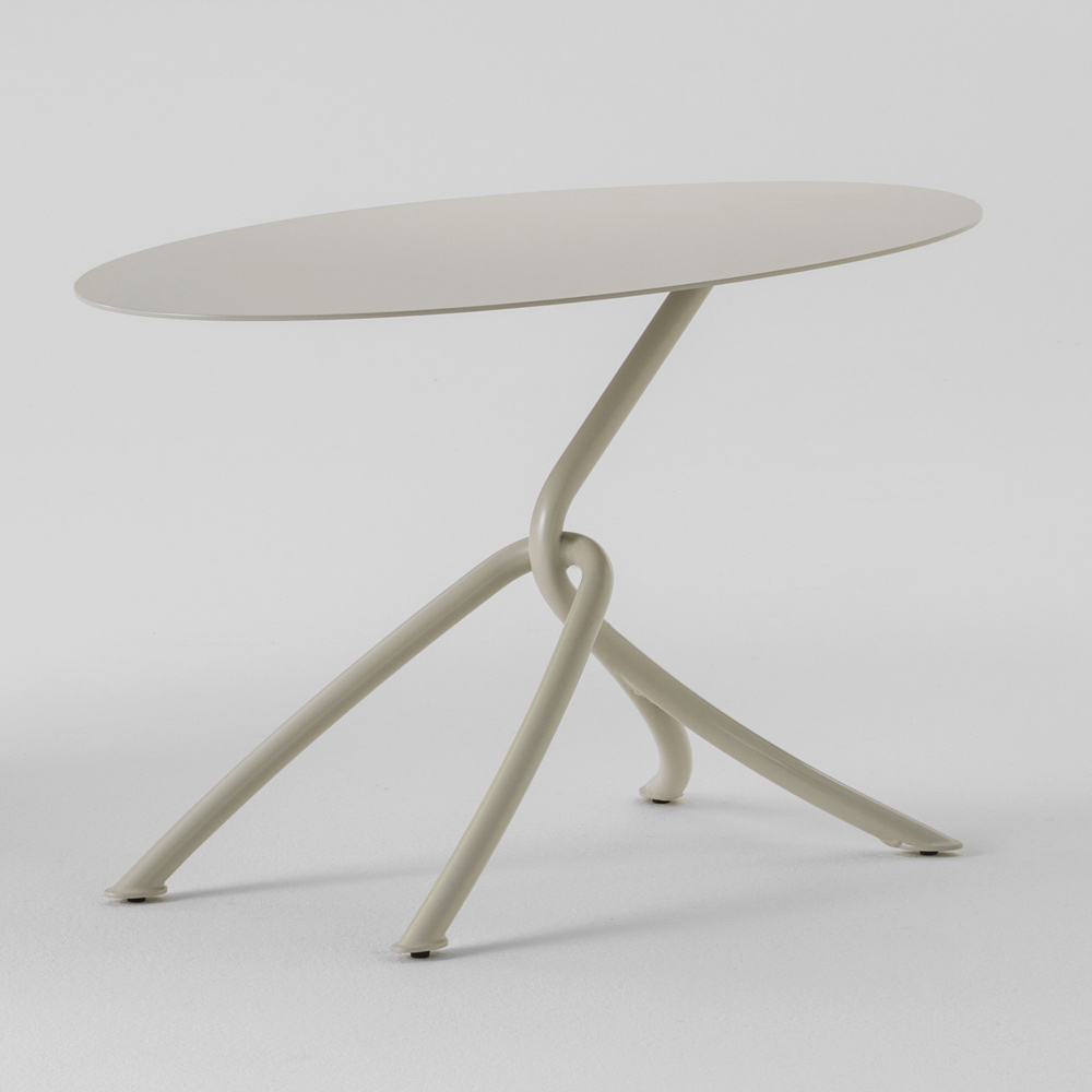 Modern outdoor coffee table made in Italy with structure and top in painted metal . An innovative and particularly original design characterises this accessory for furnishing outdoor spaces such as gardens, verandas or terraces where a creative and avant-garde style is to be maintained. What makes her look unique is the unusual shape of the base that creates a sense of movement and a wonderful harmony between the queues together with the oval top that increases its uniqueness and enriches the aesthetics with a new touch.