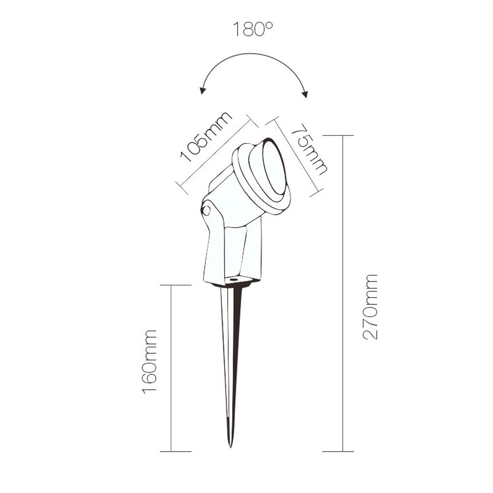 Outdoor spotlight with black cast aluminium structure complete with 3W LED with 180 ° adjustable body. A LED spot for outdoor use with a tip to be embedded in the ground with a modern and versatile design that projects a different light beam according to the needs thanks to the possibility of orienting it according to your needs. Ideal for lighting plants, trees, flower beds inside outdoor spaces such as gardens both in domestic spaces and in contract environments.