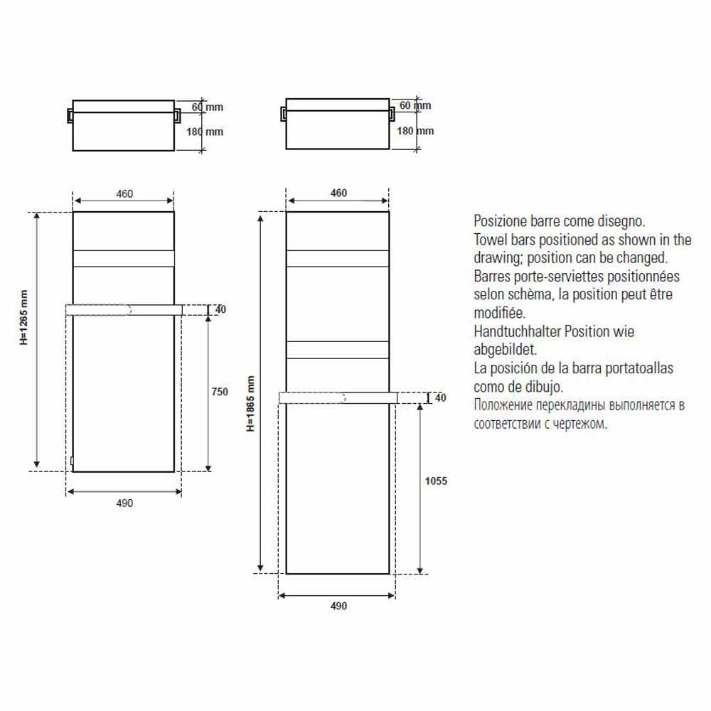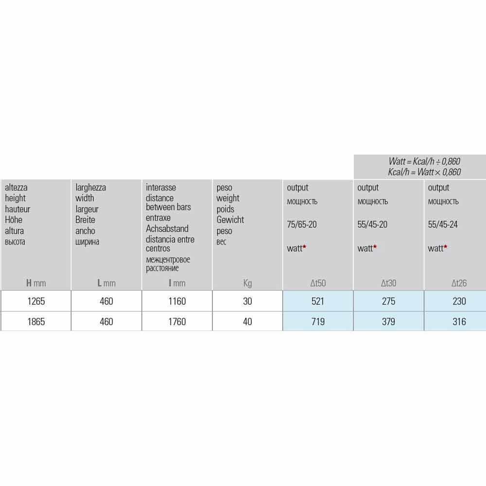 - H 1865 x L 460 x Inter. 1760 mm x Yield w (Īt50 *) 719; Yield w (Īt30 *) 379; Output w (Īt26 *) 316 (2 shelves).