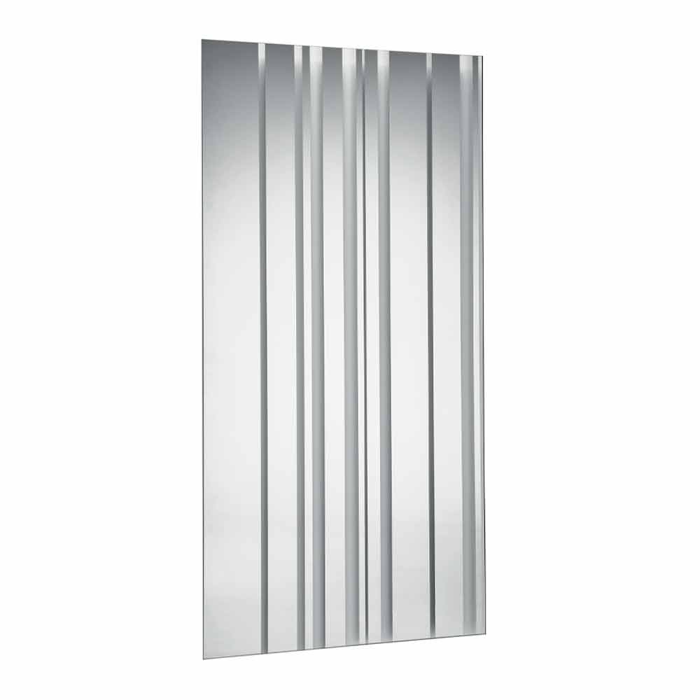 It is made of two matched elements composed of glass panels where mirrored bands and transparent band are alternated.