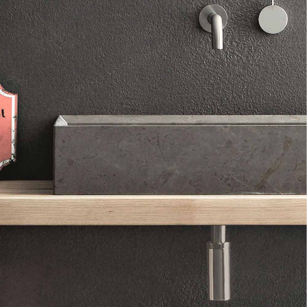 Rectangular countertop washbasin, modern design in natural stone, without drain hole.