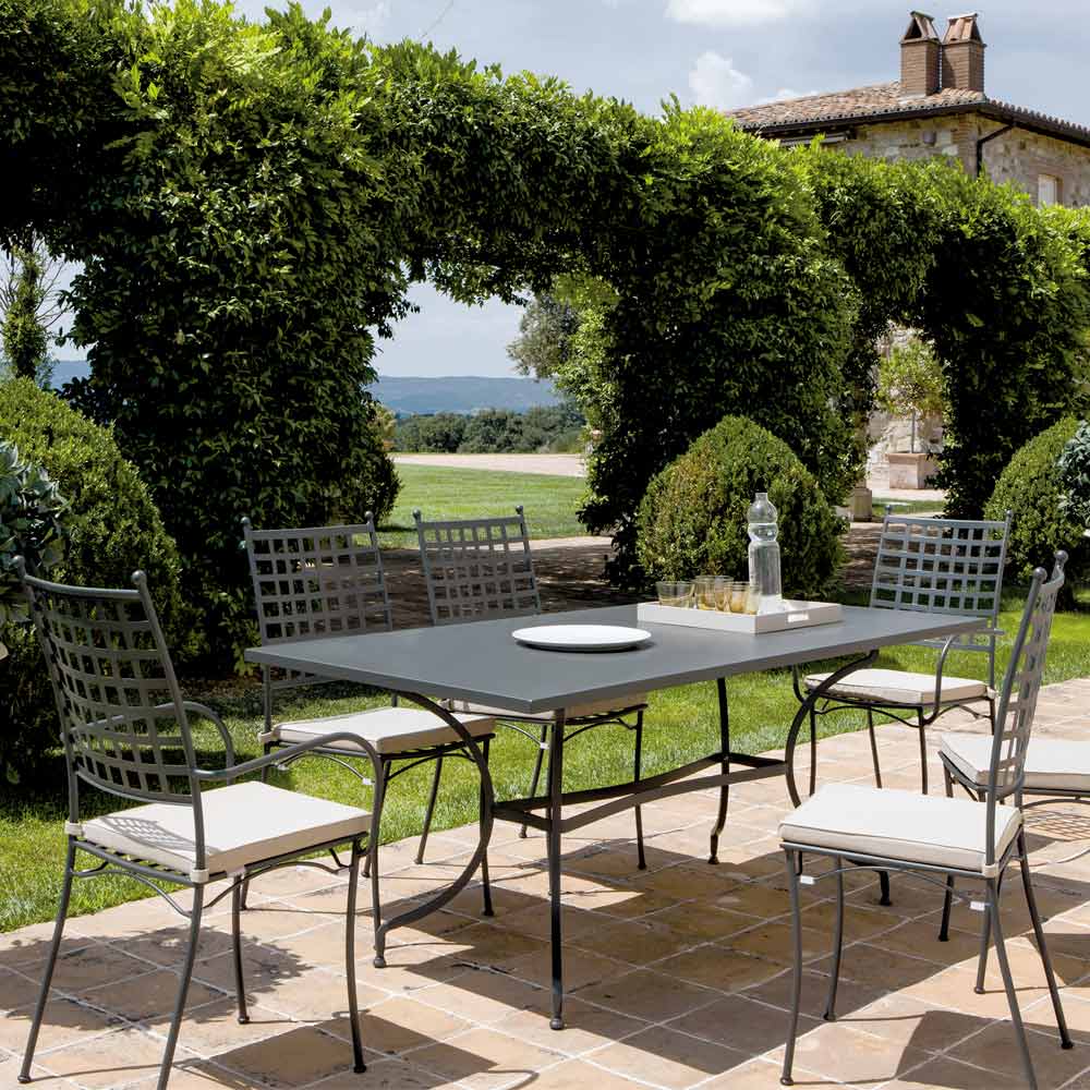 This outdoor table is designed to be an excellent ally for lunches or dinners in outdoor environments, in fact it is extremely resistant thanks to the quality of its material, 100% made in Italy . Its steel structure is strengthened by a galvanizing process to make it resistant to corrosive and atmospheric agents . The timeless style of this table is the most classic exaltation of Italian craftsmanship, perfect for giving a touch of timeless classicism to outdoor environments such as terraces, verandas, gardens or swimming pools.