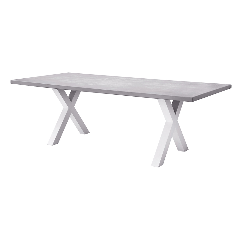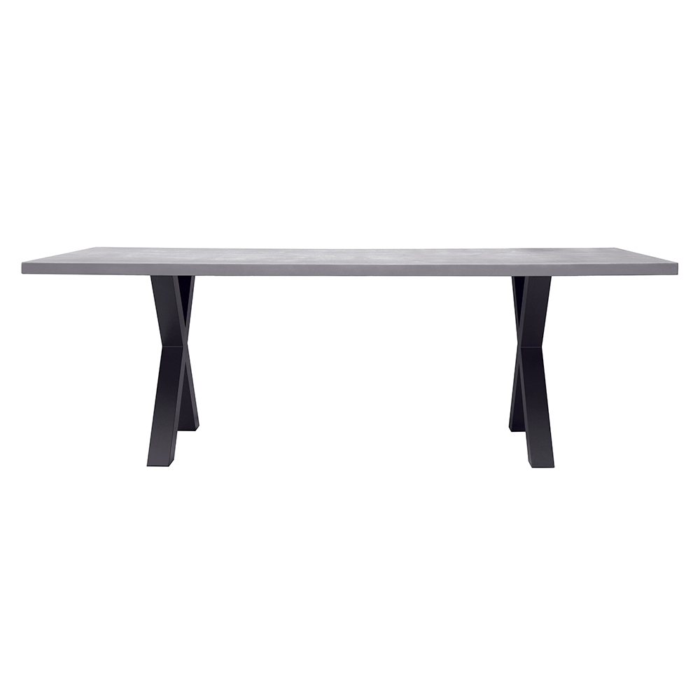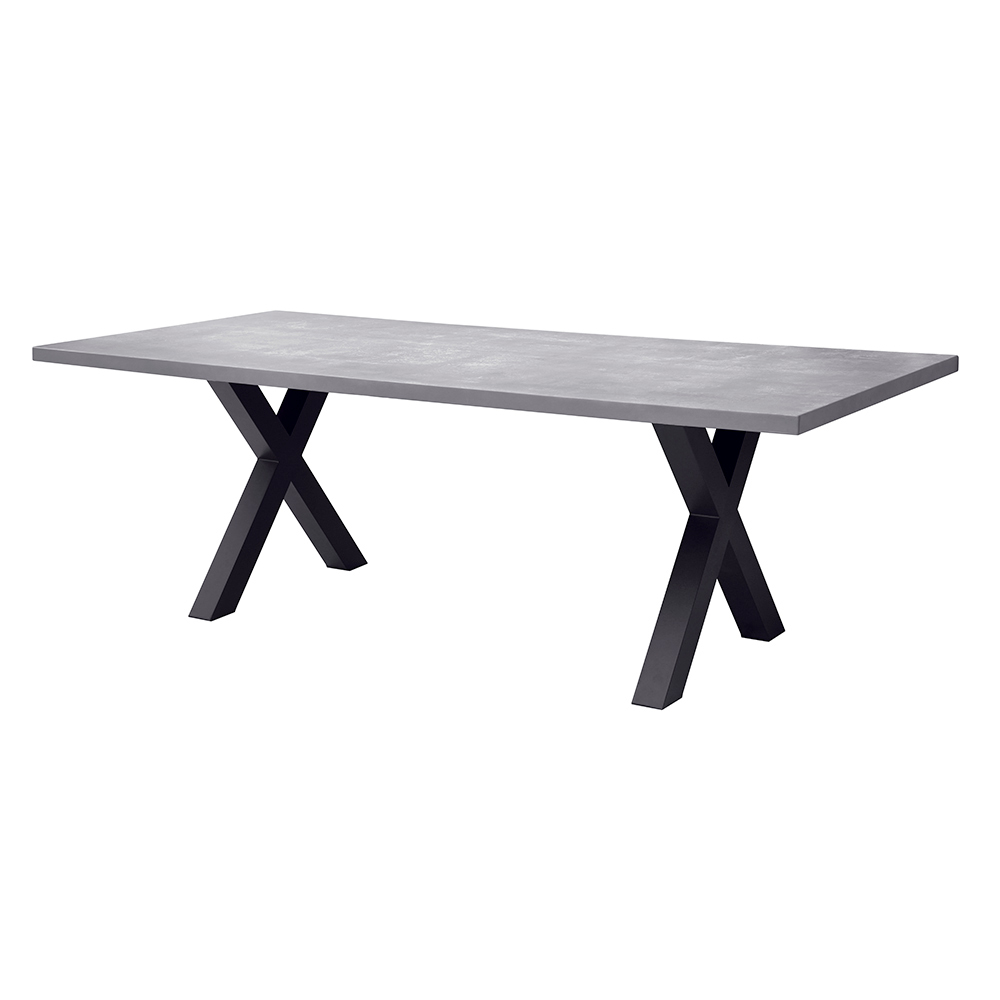 The gray resin top combines elegance and practicality, ensuring a durable, easy-to-clean surface that's suitable for all weather conditions. The crossed aluminum legs give the structure a dynamic, contemporary look while ensuring stability and sturdiness.