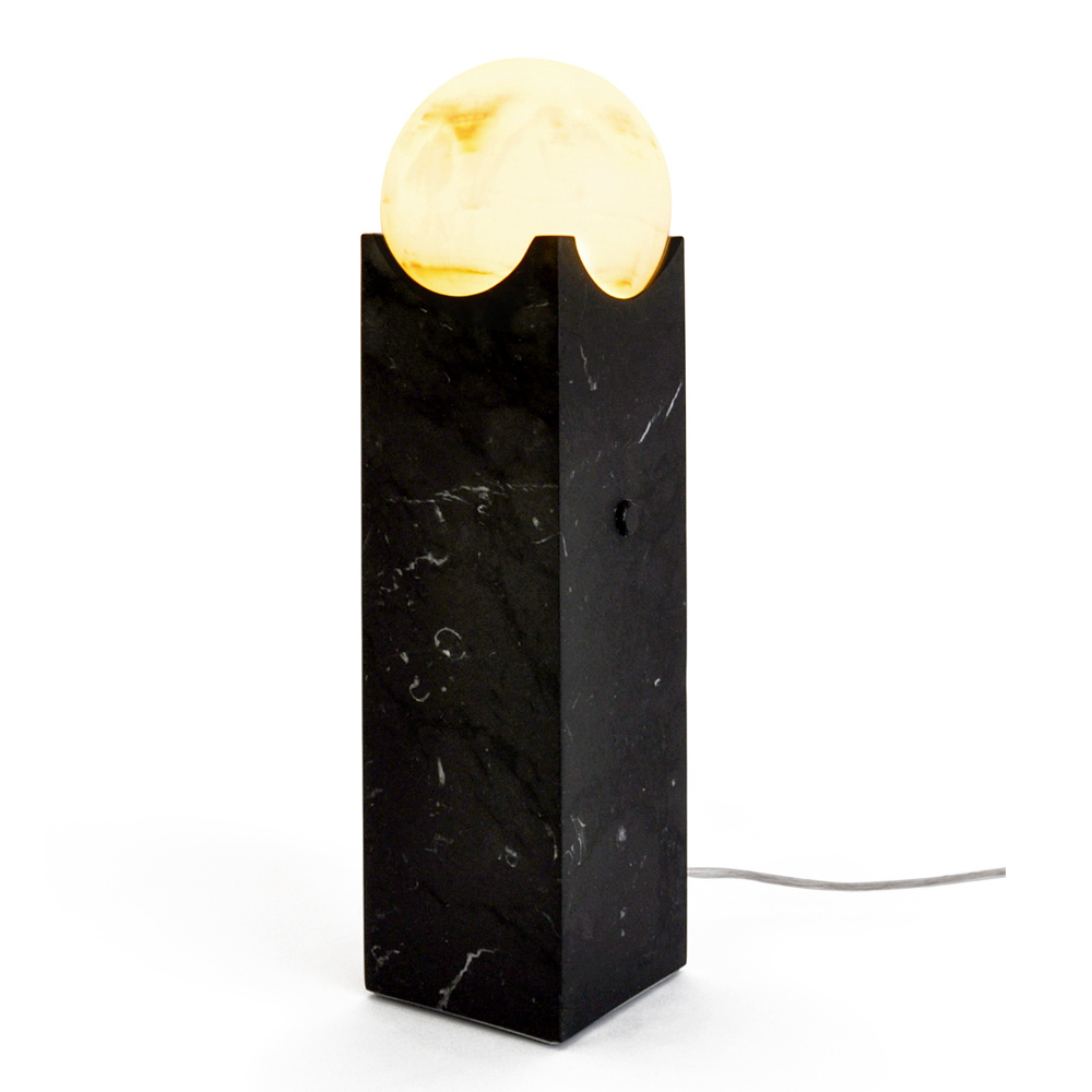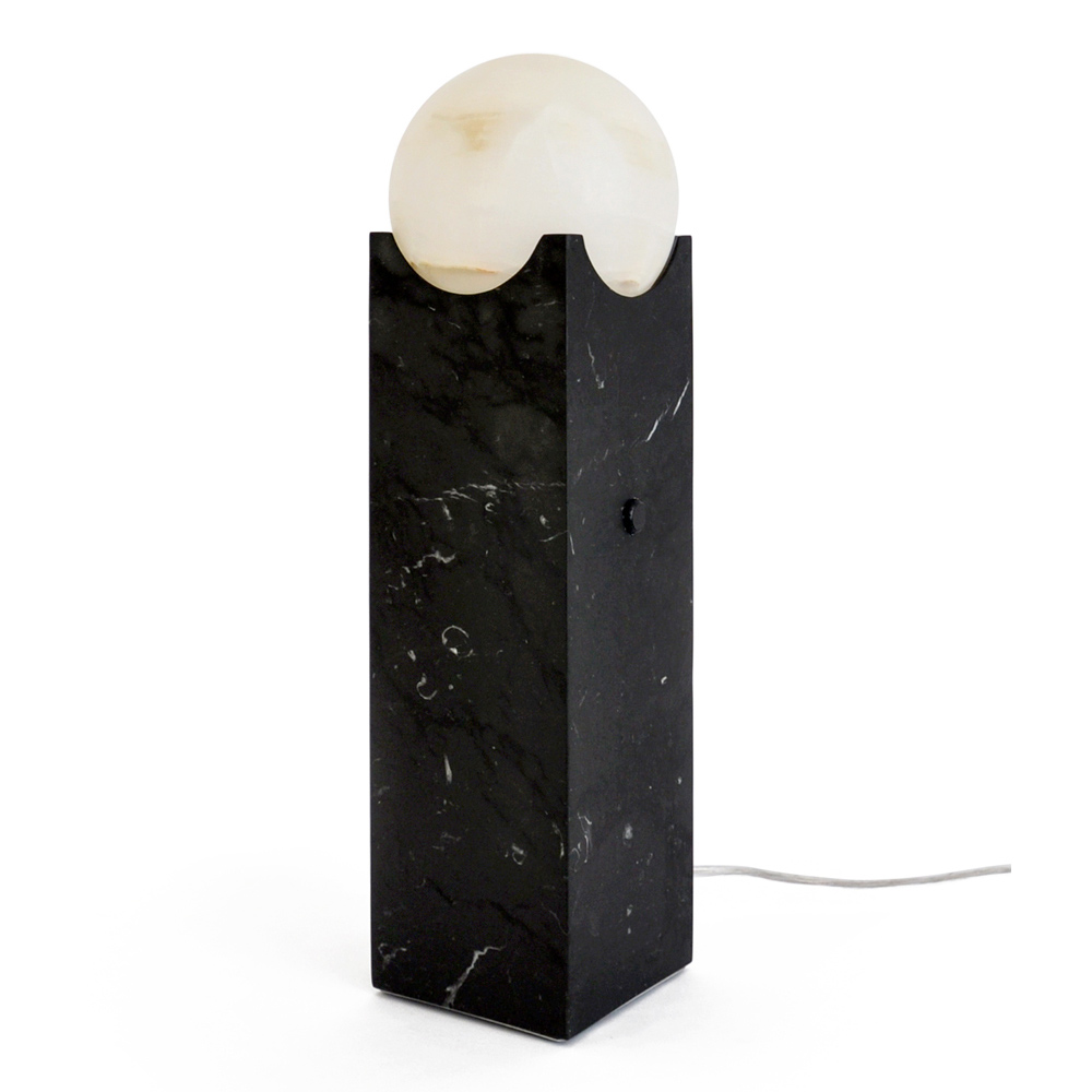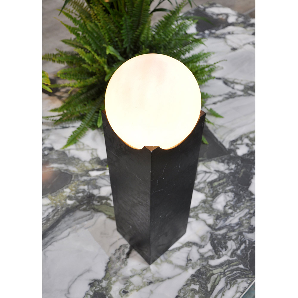 This table lamp represents a fusion between the majesty of black marble and the purity of a sphere of light. The bold, modern design creates a strong yet balanced visual contrast, perfect for the contemporary decor of those who love to be surrounded by beauty and luxury .