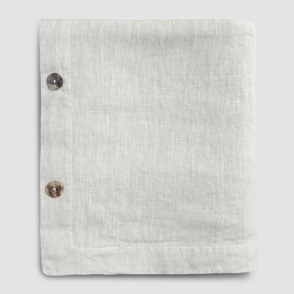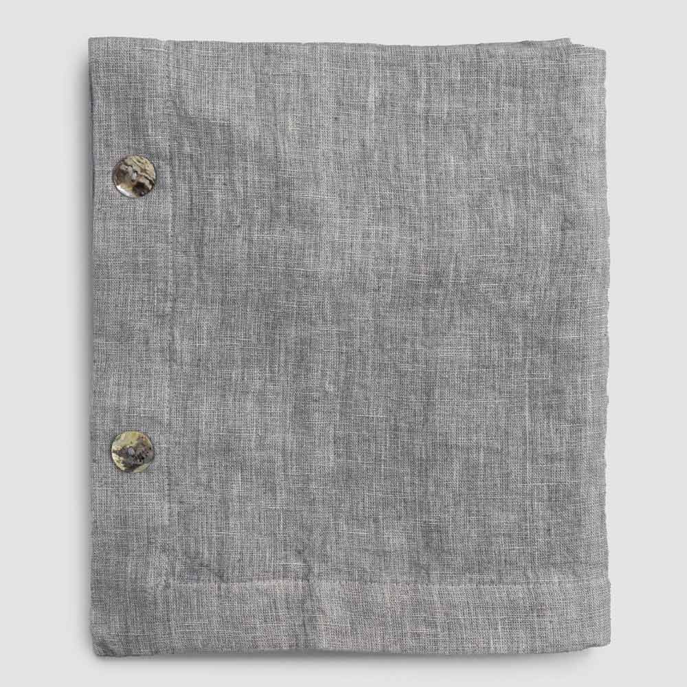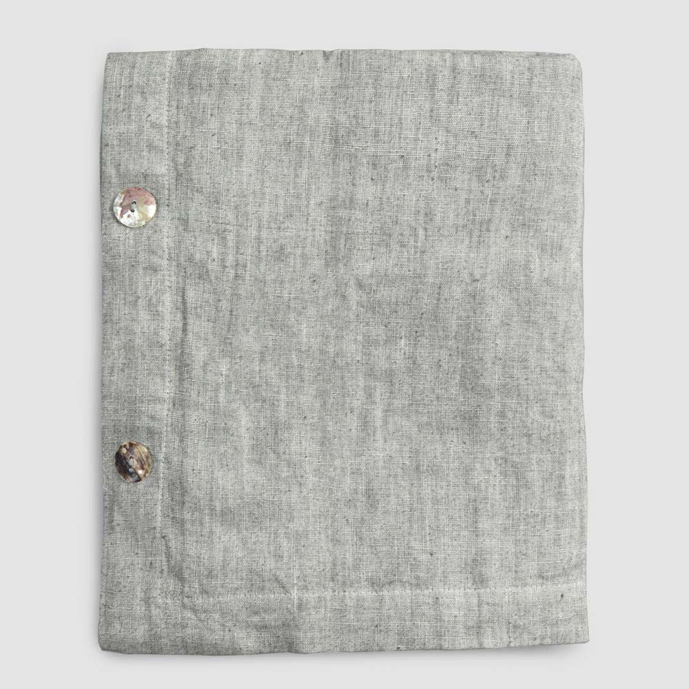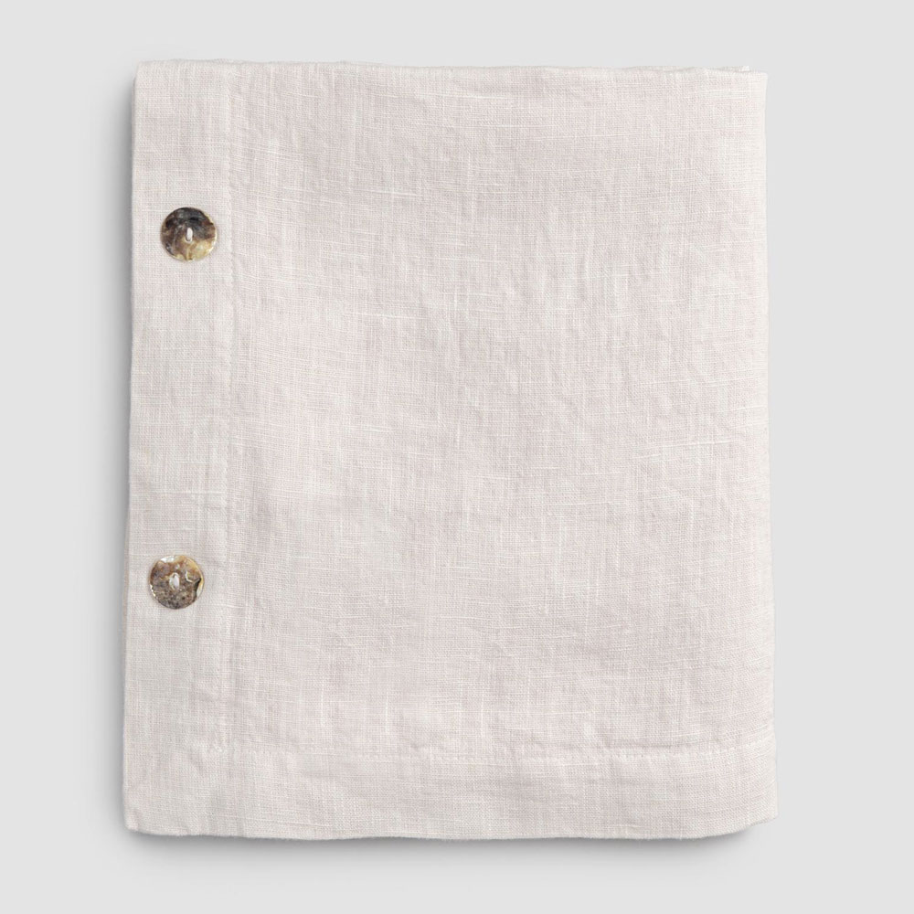 Modular rectangular linen tablecloth with mother-of-pearl buttons, handmade quality made in Italy.