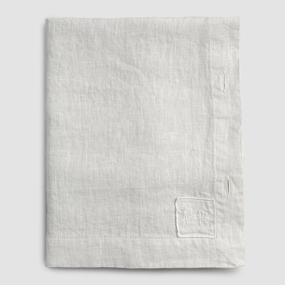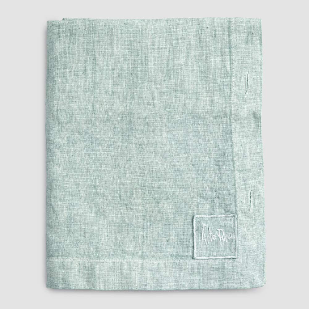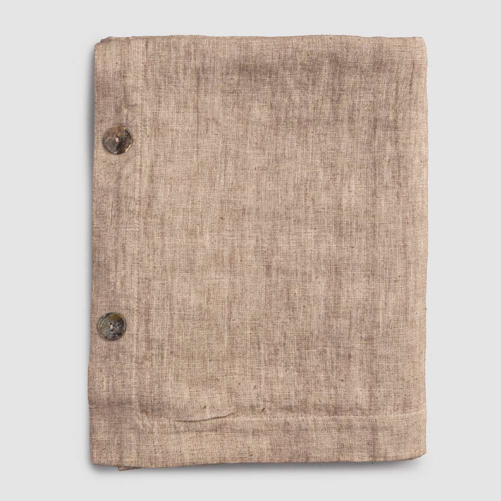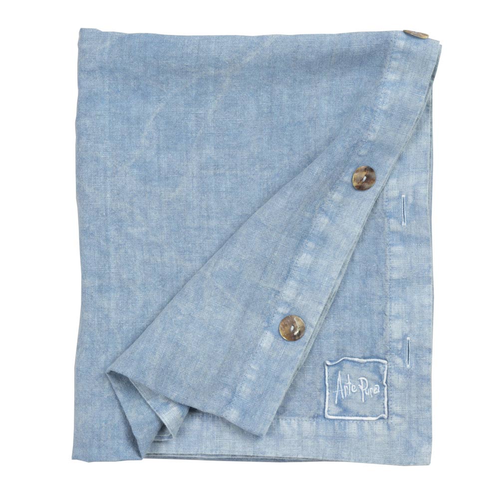 Modular rectangular linen tablecloth with mother-of-pearl buttons, handmade quality made in Italy.