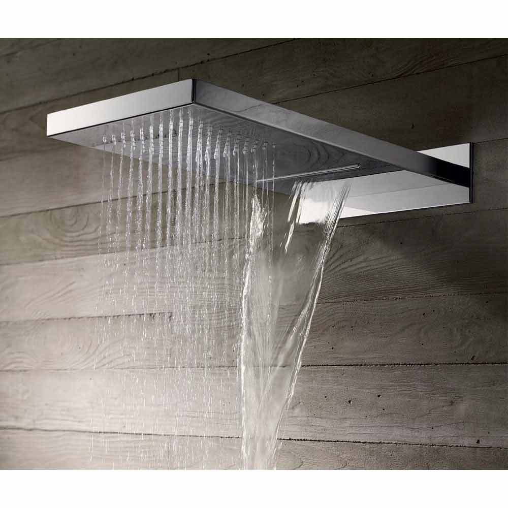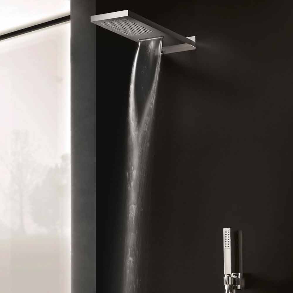 Rectangular wall-mounted shower head in stainless steel, luxury product Made in Italy.