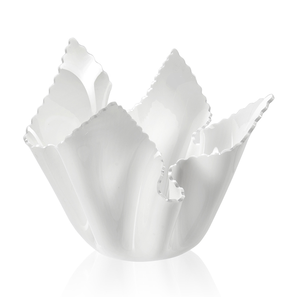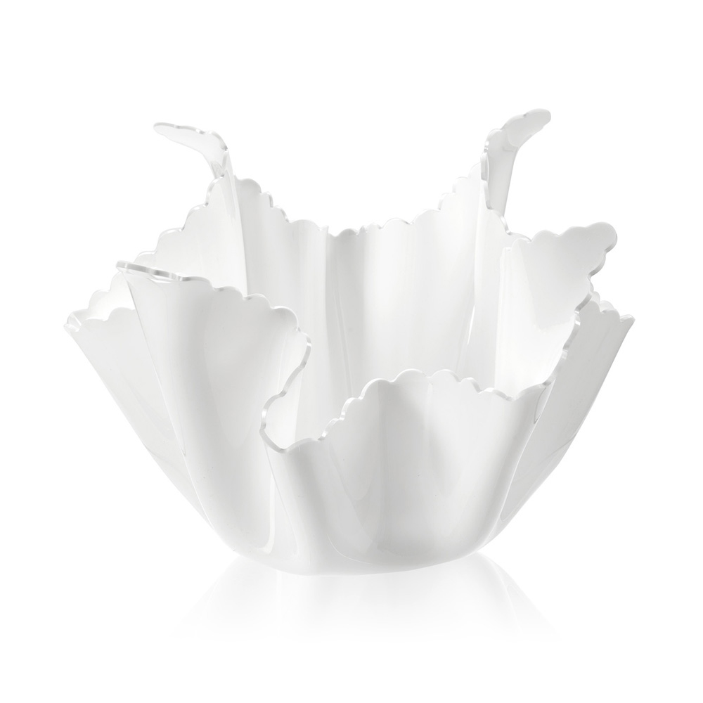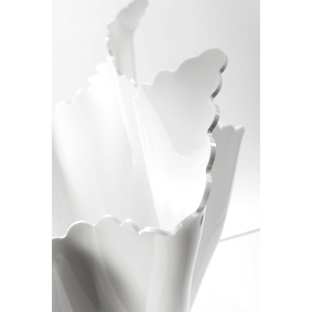 PMMA plexiglass and is draped by hand, to create a unique vase.