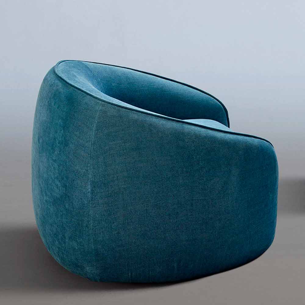 Modern relaxation armchair in orange or air force blue, luxury design with round shapes made in Italy.