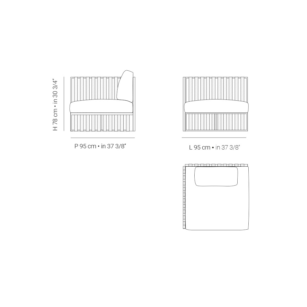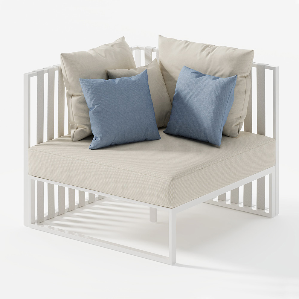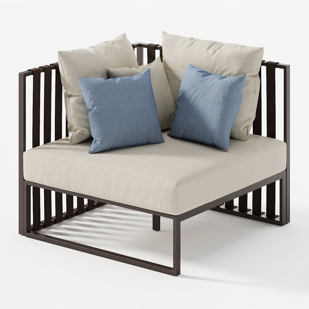 Right corner outdoor armchair in aluminium and straps with Made in Italy padded cushions