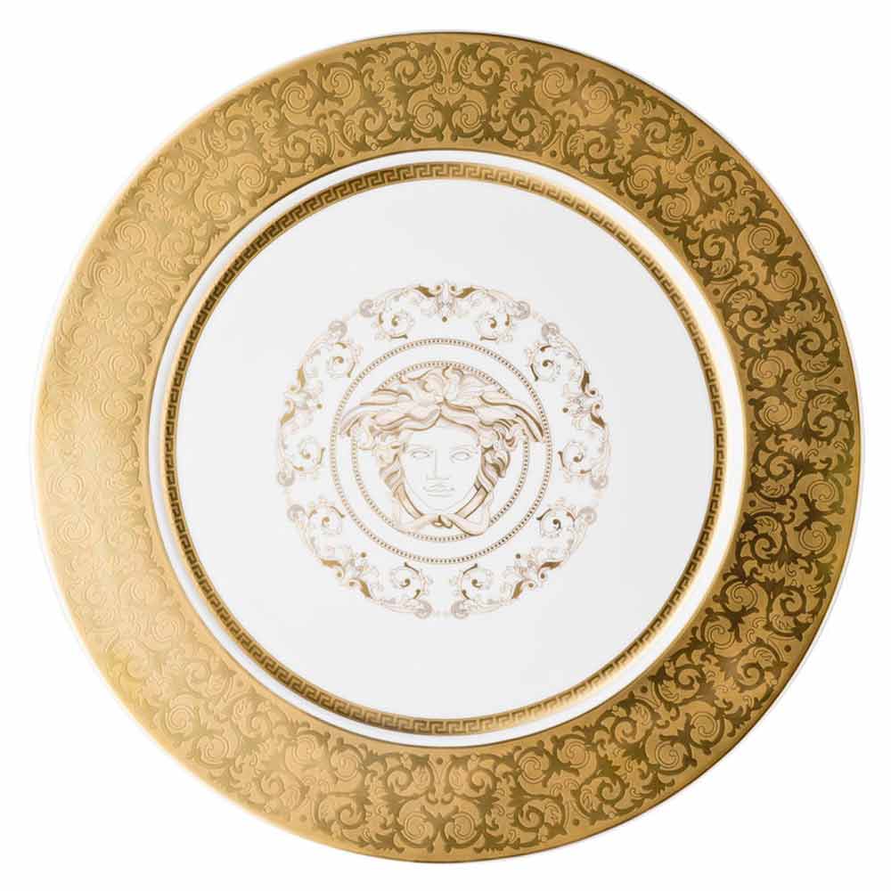 The 33cm placeholder plate by Versace is part of the refined and luxurious Medusa Gala Gold table collection.