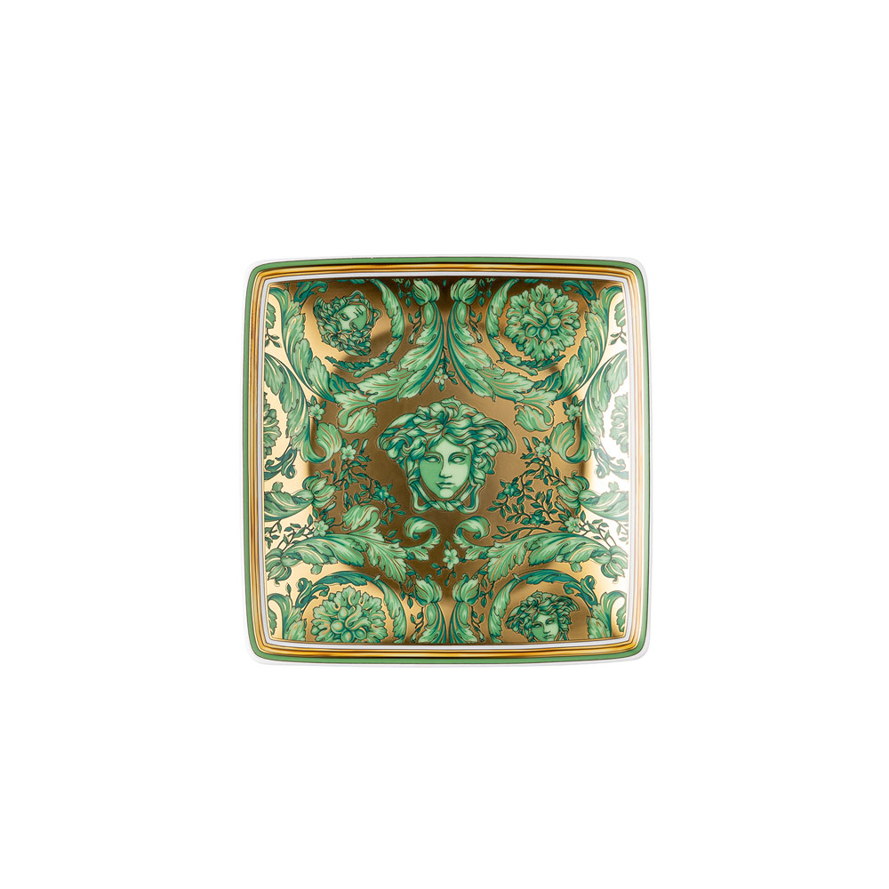 Add a touch of Christmas sophistication to your table with the stunning Medusa Garland Christmas Bowl from Versace , crafted from high-quality porcelain . The sumptuous design combines intricate baroque patterns and gold details with a bright green that evokes the allure of the festive season, while the iconic Medusa dominates with timeless elegance.