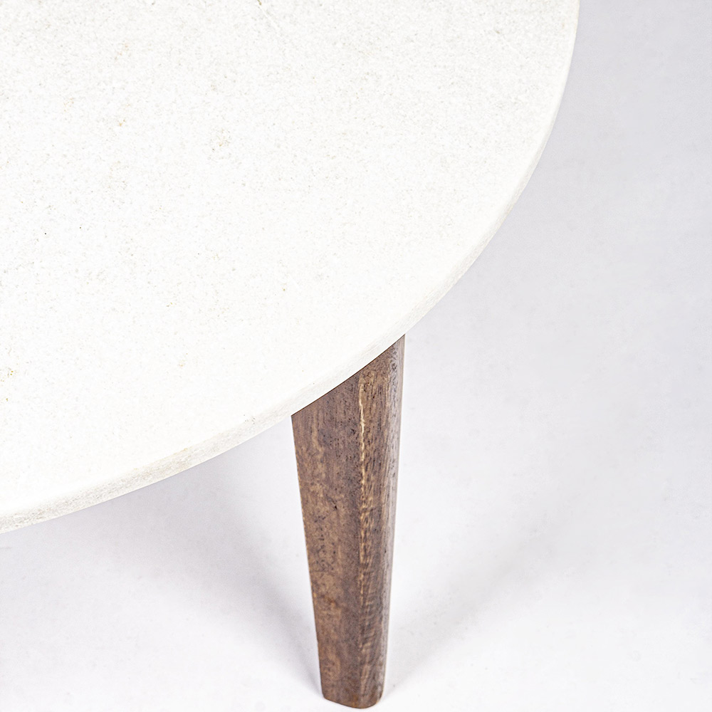 Round Coffee Table for Lounge in Marble and Mango Wood - Desiderio