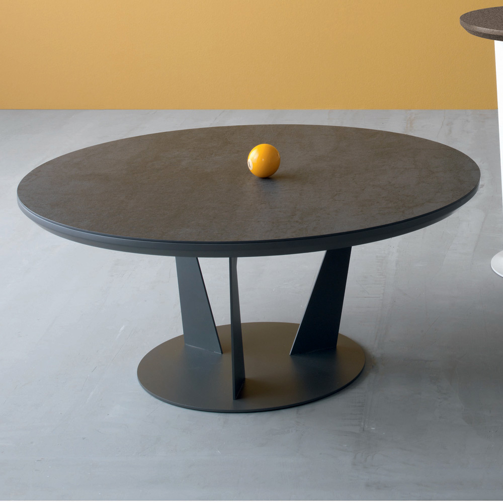 Round Coffee Table in Inclined Metal and Ceramic Top - Coriko