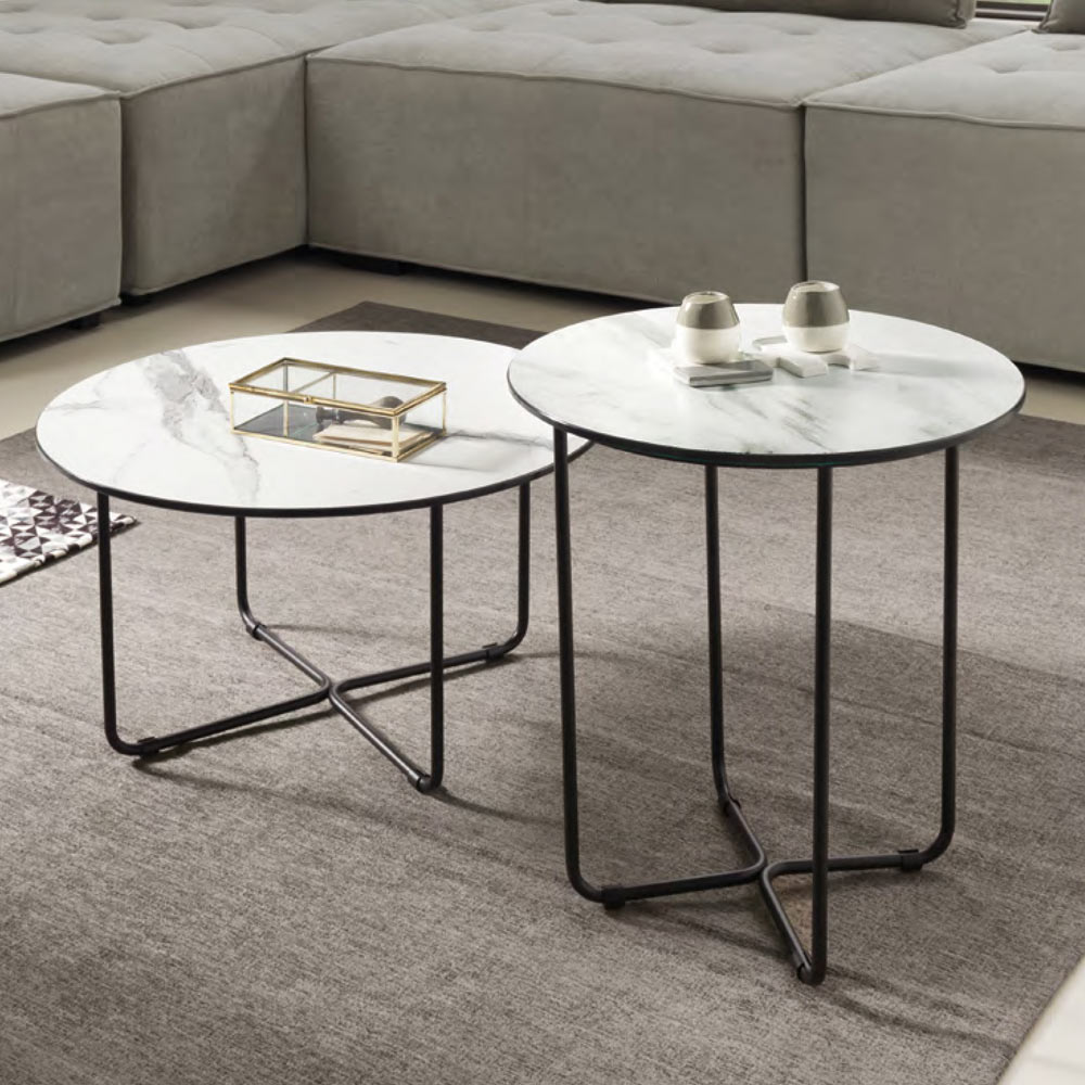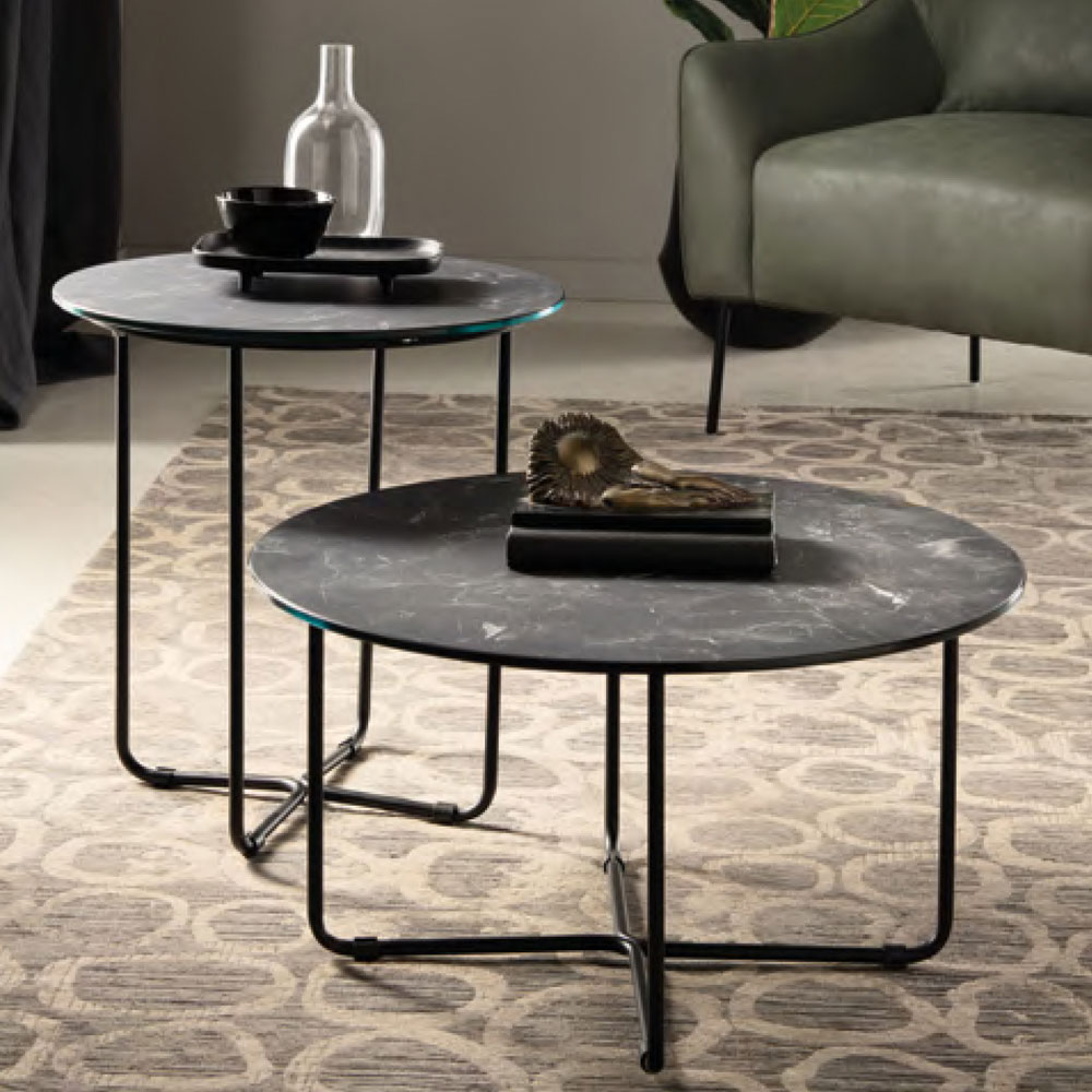 sinuous lines that create harmony and give a sense of dynamism to the product. Its aesthetic is made unique by the wonderful marble-effect top that gives the table a