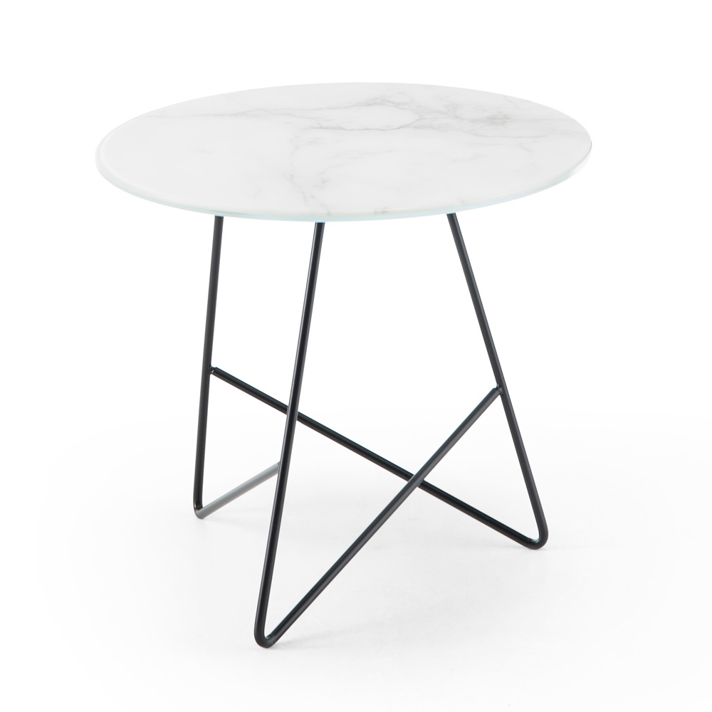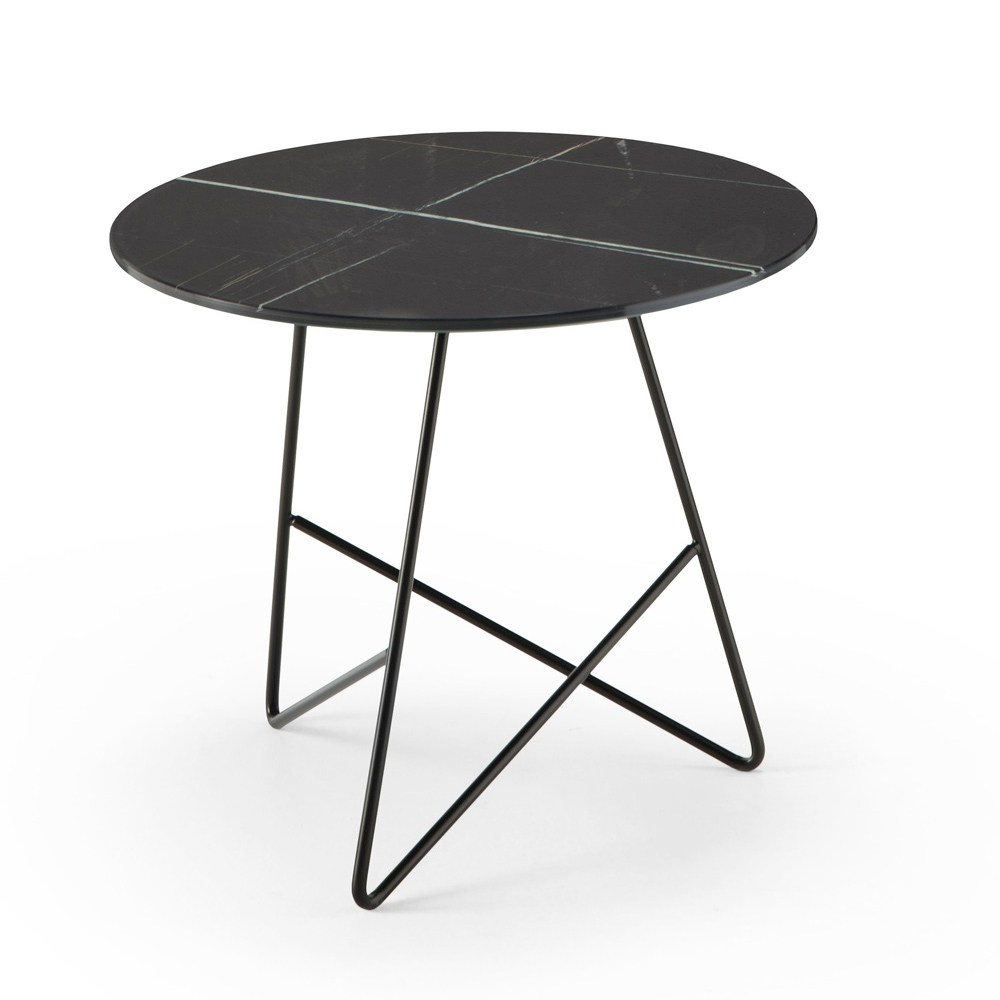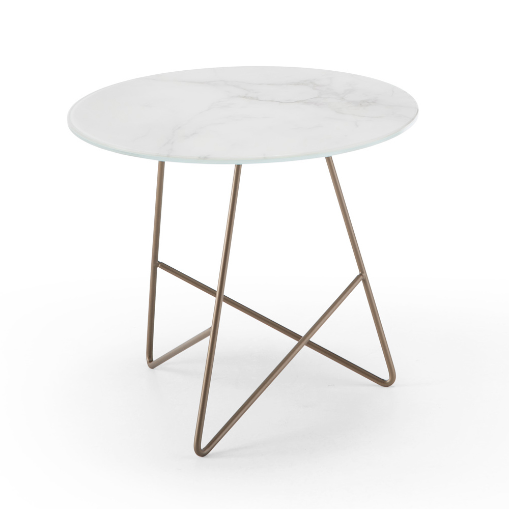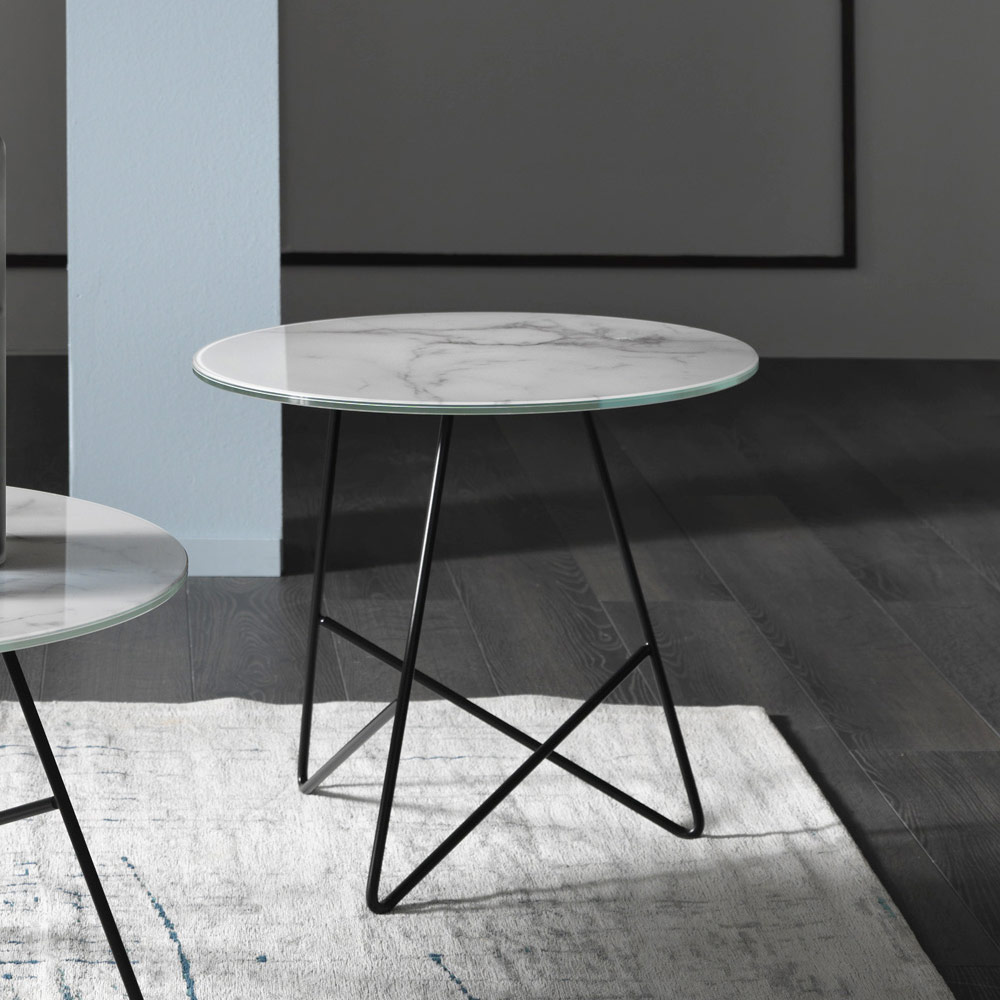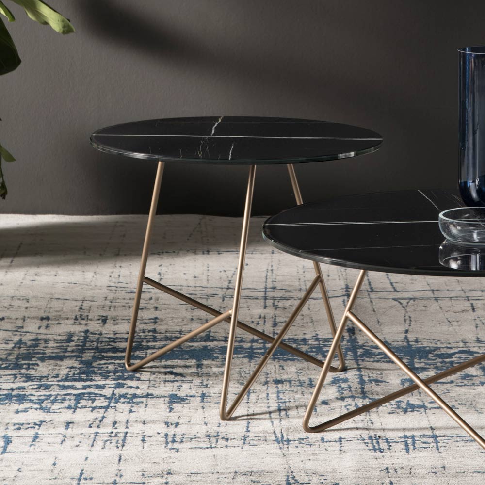 Round coffee table in metal and glass-marble top, luxury item made in Italy.