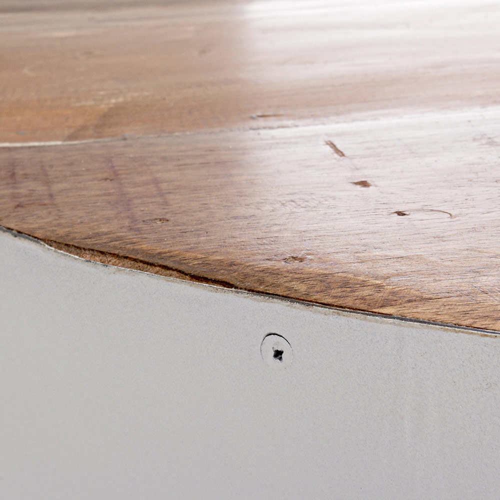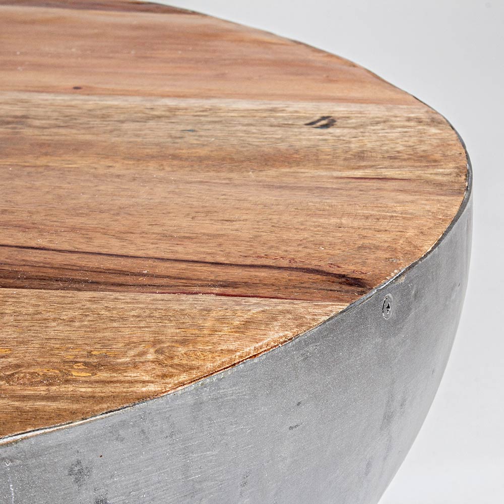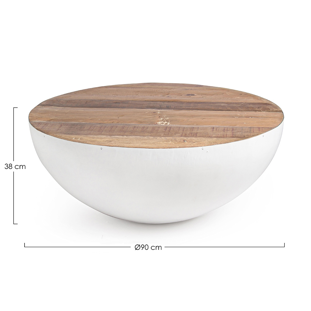 Round coffee table in recycled wood and steel, 2 colours and 2 sizes.