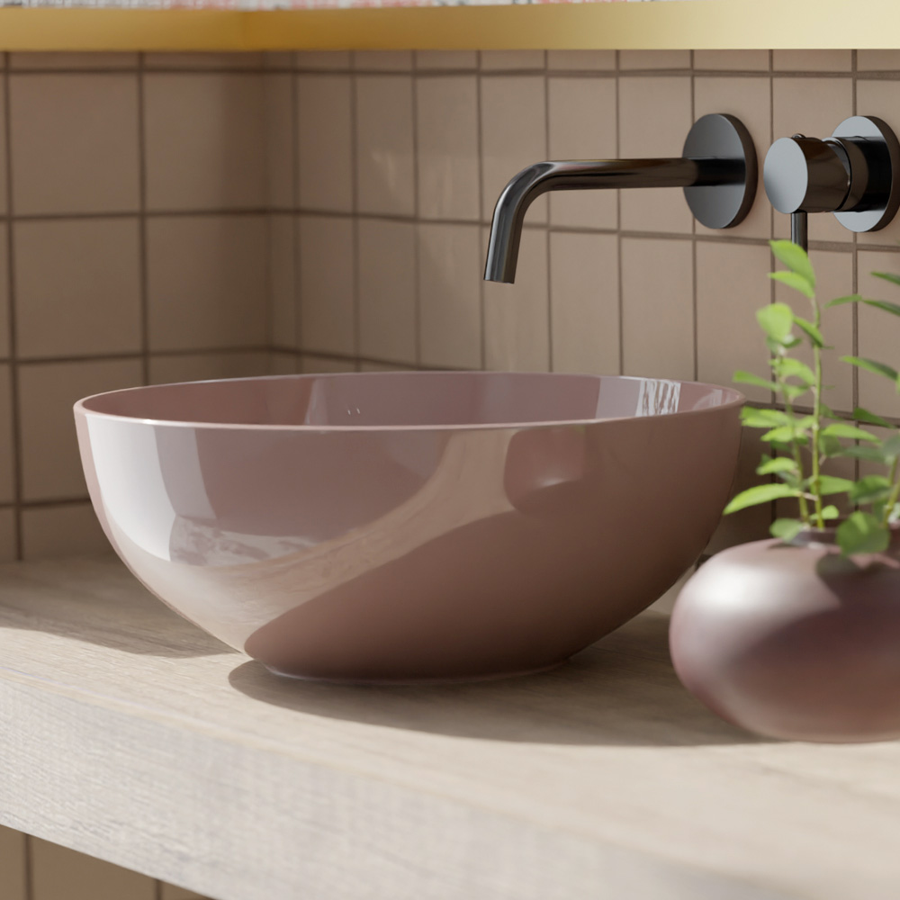 Round-shaped countertop washbasin handcrafted in Italy in colored ceramic with glossy finish. A piece of furniture characterized by simplicity and versatility , elements that make it perfect to complete any bathroom area with a modern style, bringing with it a touch of personality and elegance . The wonderful colours proposed together with the brilliance of the glossy finish enrich the aesthetics, managing to best meet the needs of those who love to furnish their homes in an exclusive and refined way for an avant-garde result capable of giving character to the environment.
