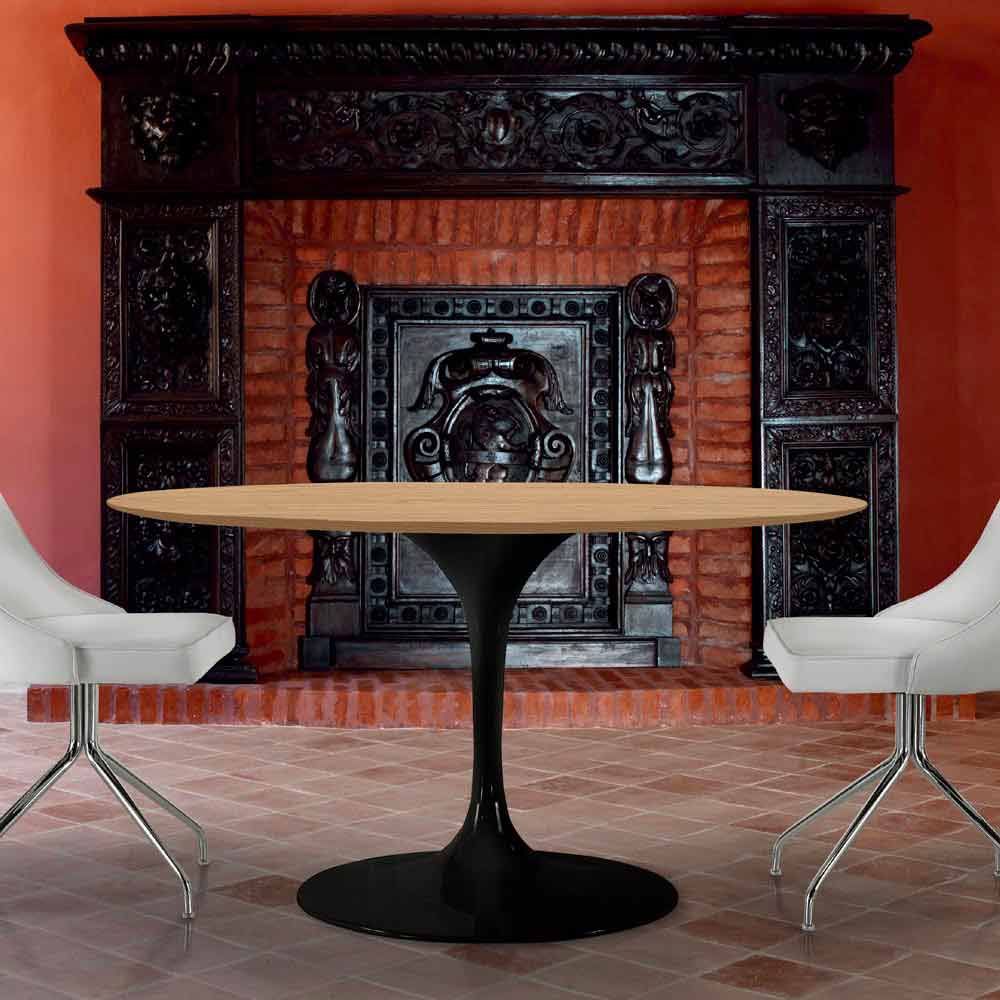 Dining table with round top in HPL laminate made in Italy, high quality.