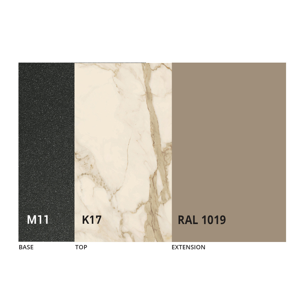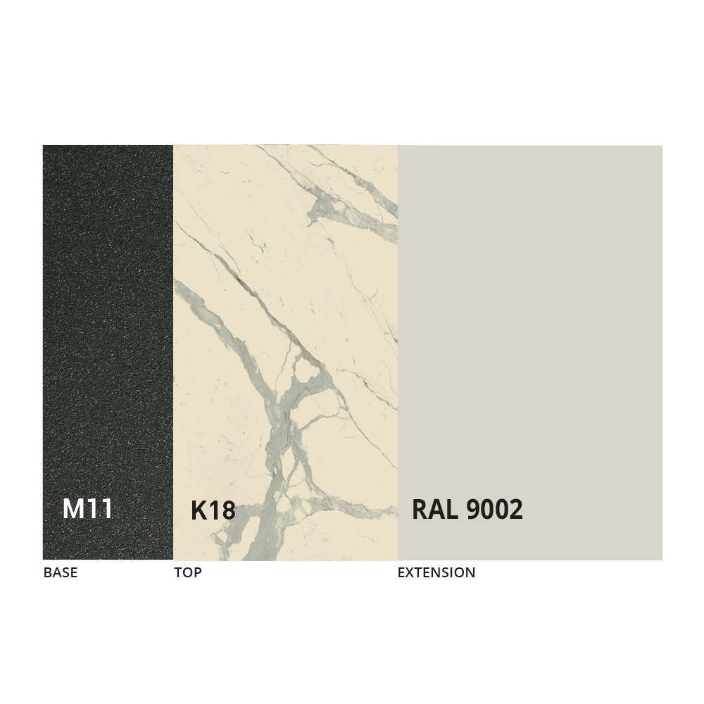 ceramic top which is divided into two half-planes to accommodate the central internal extension with book opening thus increasing the surface and the opportunities for conviviality.