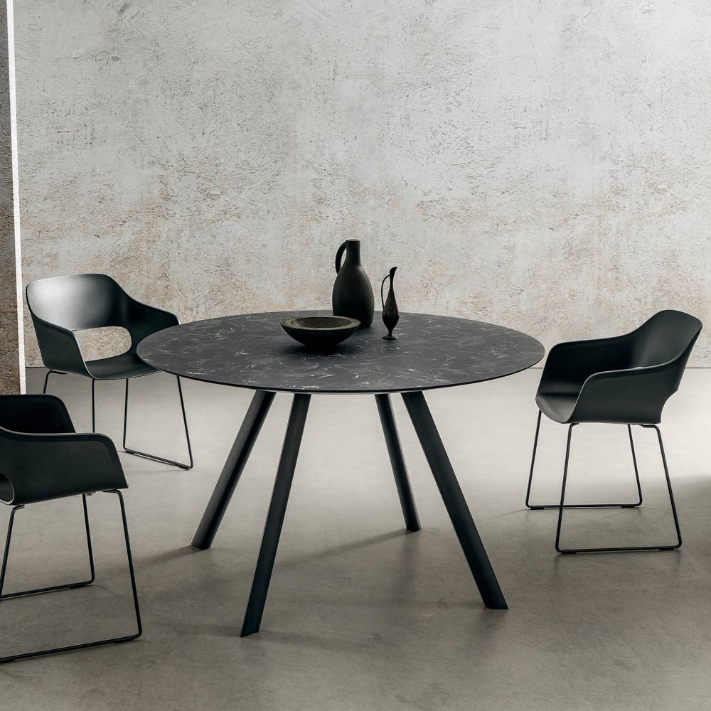 Dining table made in Italy with round top in 1 cm