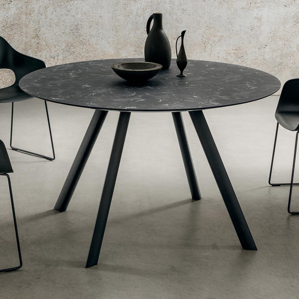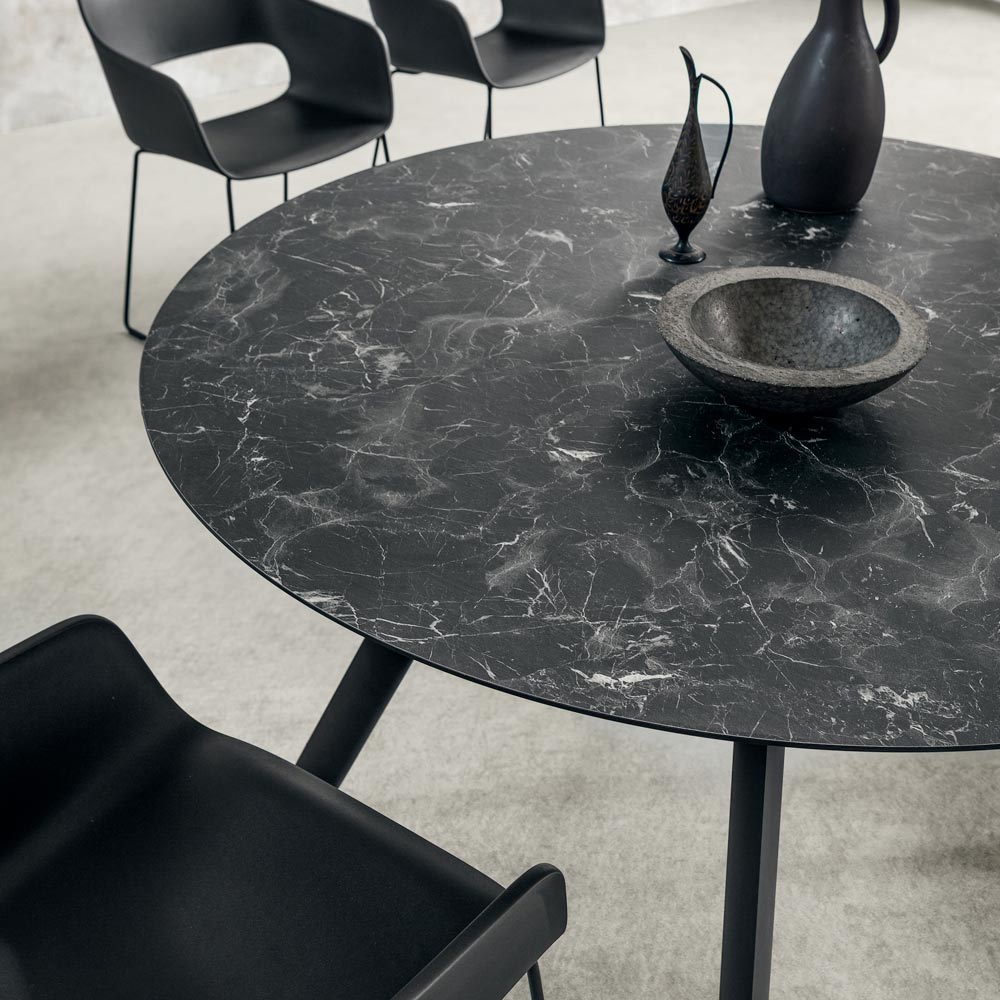 Round dining table in stratified hpl and aluminium Made in Italy, high quality.