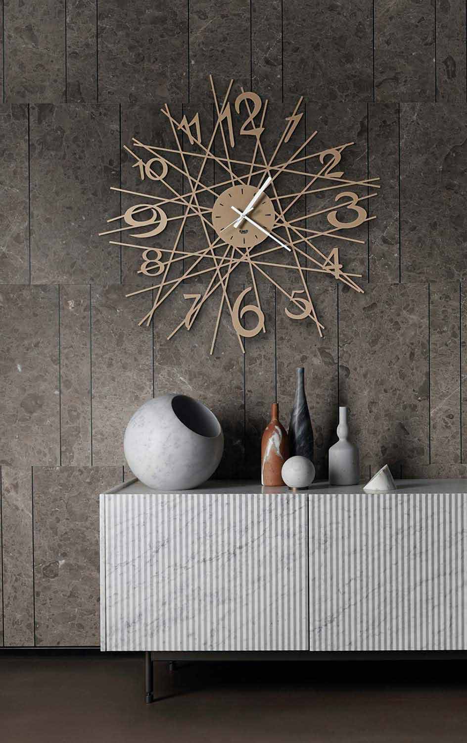 wall clock is characterized by a geometric design and simple and clean queues that make the product elegant and refined but at the same time ideal for giving personality and character to the environment.